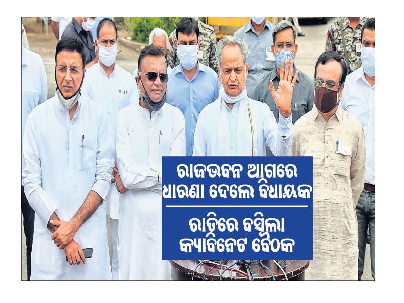 ଜୟପୁର,୨୫ା୭: ରାଜସ୍ଥାନରେ କ୍ଷମତା ଯୁଦ୍ଧକୁ ନେଇ ଦୁଇ ସପ୍ତାହ ଧରି ବଢ଼ିଚାଲିଥିବା ଉଷ୍ମତା ଜାତୀୟ ରାଜନୀତିକୁ ସରଗରମ କରିଛି। ମୁଖ୍ୟମନ୍ତ୍ରୀ ଅଶୋକ ଗେହଲଟ ଶୁକ୍ରବାର ଜୟପୁରସ୍ଥିତ ରାଜଭବନ ଆଗରେ ଶକ୍ତି ପ୍ରଦର୍ଶନ କରିଛନ୍ତି। ରାଜ୍ୟର ରାଜନୈତିକ ସ୍ଥିତି ଓ ମହାମାରୀ କରୋନା ସମ୍ପର୍କରେ ଆଲୋଚନା ପାଇଁ ବିଧାନସଭାର ସ୍ବତନ୍ତ୍ର ଅଧିବେଶନ ଡାକିବା ଦାବିରେ ଅଟଳ ଗେହଲଟ ନିଜର ୧୦୦ ବିଧାୟକଙ୍କୁ ଧରି ରାଜଭବନ ଆଗରେ ଧାରଣା ଦେଇଛନ୍ତି।