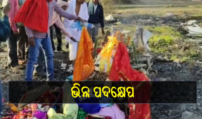 ଜଣେ ଯୁବତୀ ପରିବାର ବିରୋଧରେ ଯାଇ ତାଙ୍କ ସମ୍ପର୍କୀୟ ଭାଇଙ୍କୁ ବିବାହ କରିଛନ୍ତି। ଏ ନେଇ ଯୁବତୀଙ୍କ ପରିବାର ଲୋକେ ଝିଅର ଏକ କୁଶପୁତ୍ତଳିକା ତିଆରି କରି ସେଥିରେ ନିଆଁ ଲଗାଇ ଅନ୍ତିମ ସଂସ୍କାର କରିଛନ୍ତି।