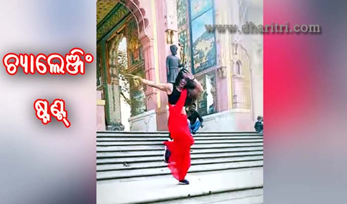 ଇଣ୍ଟରନେଟ୍ରେ ଜୟପୁରର ଜଣେ ଯୁବତୀଙ୍କ ଷ୍ଟଣ୍ଟ୍ ଭିଡିଓ ଖୁବ୍ ଭାଇରାଲ ହେଉଛି। ଯୁବତୀଙ୍କ ଅଦ୍ଭୁତ ବ୍ୟାକ୍ଫ୍ଲିପ୍ ସମସ୍ତଙ୍କୁ ଚକିତ କରିଦେଇଛି। ଯୁବତୀ ଜଣକ ଆଥେଲେଟିକ୍ କପଡ଼ାରେ ନୁହେଁ ଶାଢ଼ି ପିନ୍ଧି ଷ୍ଟଣ୍ଟ ମାରିଥିବା ଭିଡିଓରେ ଦେଖିବାକୁ ମିଳିଛି। ଏହି ଷ୍ଟଣ୍ଟ୍ ଏତେ ସହଜ ନୁହେଁ। ଯାହା ଆପଣ ଦେଖୁଛନ୍ତି। ଖାସ୍ କରି ଶାଢ଼ି ପିନ୍ଧି ନିଜର ଭାରସାମ୍ୟ ରଖିବା ବହୁତ ଚ୍ୟାଲେଞ୍ଜିଂ। କେଶ ମୁକୁଳା କରିଥିବା ଏହି ଯୁବତୀ ଜଣକ ଶାଢ଼ି ପିନ୍ଧି ଶିଡ଼ିରେ ପଛୁଆ ଚାଲୁଛନ୍ତି। ଯାହାକୁ ଦେଖି ଲୋକେ ଆଶ୍ଚର୍ଯ୍ୟ ହୋଇଯାଇଛନ୍ତି। ଯୁବତୀ ଜଣକ ଏକ ଲାଲ୍ ରଙ୍ଗର ଶାଢ଼ି ପିନ୍ଧି ଆଖି ଝଲସିବା ପରି ଷ୍ଟଣ୍ଟ୍ କରୁଥିବା ନଜର ଆସିଛି।