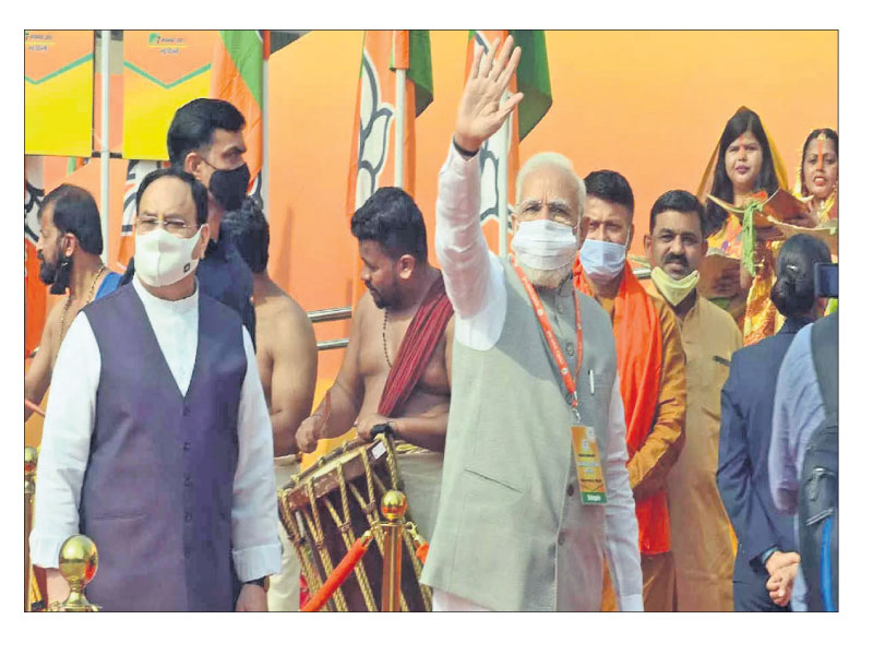 ଆସନ୍ତା ବର୍ଷ ଫେବୃୟାରୀ-ମାର୍ଚ୍ଚ ଆଡ଼କୁ ଉତ୍ତର ପ୍ରଦେଶ, ଉତ୍ତରାଖଣ୍ଡ, ପଞ୍ଜାବ, ଗୋଆ ଓ ମଣିପୁରରେ ବିଧାନସଭା ନିର୍ବାଚନ ହେବ। ଏହାକୁ ଦୃଷ୍ଟିରେ ରଖି ଭାଜପା କାର୍ଯ୍ୟକାରିଣୀ ବୈଠକ ଅନୁଷ୍ଠିତ ହୋଇଛି। ପ୍ରଧାନମନ୍ତ୍ରୀ ମୋଦି ଉକ୍ତ ବୈଠକକୁ ସମ୍ବୋଧିତ କରି କହିଛନ୍ତି, ଭାଜପା କୌଣସି ନିର୍ଦ୍ଦିଷ୍ଟ କରିବାର ଚାରିପଟେ ଘୂରି ବୁଲିବା ପରିବର୍ତ୍ତେ ‘ସେବା, ସଙ୍କଳ୍ପ ଓ ସମର୍ପଣ’ର ମୂଲ୍ୟବୋଧକୁ ନେଇ ଆଗେଇ ଚାଲିଛି। ନିକଟରେ ଅନୁଷ୍ଠିତ ତେଲଙ୍ଗାନାର ଏଲ୍ଲେନାବାଦ ଉପନିର୍ବାଚନରେ ସଫଳତା ଭାଜପାର ବିକାଶ କାର୍ଯ୍ୟସୂଚୀର ଗ୍ରହଣୀୟତାକୁ ଦର୍ଶାଉଛି। ଭାଜପା ଲୋକଙ୍କ ସେବା କରିବାର ସଂସ୍କୃତି ପ୍ରତି ସମର୍ପିତ ବୋଲି ପ୍ରଧାନମନ୍ତ୍ରୀ କହିଥିବା କେନ୍ଦ୍ରମନ୍ତ୍ରୀ ଭୂପେନ୍ଦ୍ର ଯାଦବ ଗଣମାଧ୍ୟମକୁ ସୂଚନା ଦେଇଛନ୍ତି। ଭାଜପା ରାଷ୍ଟ୍ରୀୟ ଅଧ୍ୟକ୍ଷ ଜେ.ପି. ନଡ୍ଡା କହିଥିଲେ, ଦଳକୁ ଆହୁରି ସଙ୍ଗଠିତ କରିବାକୁ ପଡ଼ିବ। ଭାଜପା ପାଇଁ ଭଲ ସମୟ ଆସିବା ବାକି ଅଛି। ସେହିପରି ଆଗାମୀ ନିର୍ବାଚନରେ ଦଳର ବିଜୟକୁ ସୁନିଶ୍ଚିତ କରାଯିବ ବୋଲି ଅର୍ଥମନ୍ତ୍ରୀ ନିର୍ମଳା ସୀତାରାମନ ସ୍ପଷ୍ଟ କରିଥିଲେ। ବୈଠକରେ ନିର୍ବାଚନ ହେବାକୁ ଥିବା ରାଜ୍ୟଗୁଡ଼ିକ ମଧ୍ୟରୁ ୟୁପି, ଉତ୍ତରାଖଣ୍ଡ, ଗୋଆ ଓ ମଣିପୁରର ମୁଖ୍ୟମନ୍ତ୍ରୀ ତଥା ଭାଜପା ସଭାପତିମାନେ ଦଳୀୟ ରଣନୀତିକୁ ନେଇ ରିପୋର୍ଟ ଉପସ୍ଥାପନ କରିଥିଲେ। ପଞ୍ଜାବ ୟୁନିଟ୍ ସଭାପତି ମଧ୍ୟ ଅନୁରୂପ ଉପସ୍ଥାପନା ରଖିଥିଲେ। ଭାଜପା ନେତାମାନେ ୫ ରାଜ୍ୟ ବିଧାନସଭା ନିର୍ବାଚନକୁ ଦୃଷ୍ଟିରେ ରଖି ୟୁପି ମୁଖ୍ୟମନ୍ତ୍ରୀ ଯୋଗୀ ଆଦିତ୍ୟନାଥ କାର୍ଯ୍ୟକାରିଣୀ ବୈଠକରେ ଏକ ରାଜନୈତିକ ସଂକଳ୍ପନାମା ଉପସ୍ଥାପନ ପାଇଁ ପରାମର୍ଶ ଦେଇଥିଲେ। ଯୋଗୀଙ୍କ ପ୍ରସ୍ତାବକୁ ଉତ୍ତରାଖଣ୍ଡ ମୁଖ୍ୟମନ୍ତ୍ରୀ ପୁଷ୍କର ସିଂ ଧାମି, ଗୋଆ ମୁଖ୍ୟମନ୍ତ୍ରୀ ପ୍ରମୋଦ ସାଓ୍ବନ୍ତ ଓ ମଣିପୁର ମୁଖ୍ୟମନ୍ତ୍ରୀ ଏନ୍.ବୀରେନ୍ ସିଂ ସମର୍ଥନ କରିଥିଲେ। ଉକ୍ତ ସଂକଳ୍ପନାମାରେ କୋଭିଡ୍-୧୯ ମୁକାବିଲା, ଟିକାକରଣ, ଜଳବାୟୁ ପରିବର୍ତ୍ତନ’ଆଦି ପ୍ରସଙ୍ଗରେ ପ୍ରଧାନମନ୍ତ୍ରୀଙ୍କ ନେତୃତ୍ୱ ପ୍ରତି ଆସ୍ଥା ପ୍ରକଟ ସହ ବିରୋଧୀ ଦଳଗୁଡ଼ିକ ସୁବିଧାବାଦ ରାଜନୀତି କରୁଥିବା ନେଇ ନିନ୍ଦା କରାଯାଇଛି।