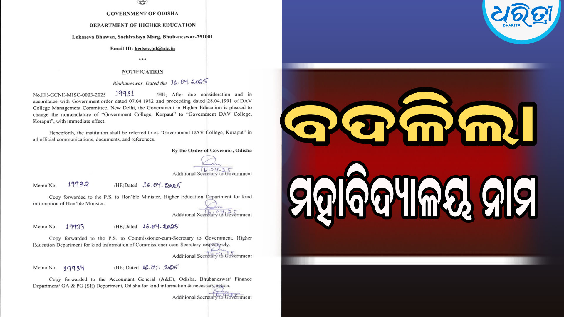 କୋରାପୁଟ,୧୮ା୪(ଅମିତାଭ ବେହେରା): କୋରାପୁଟ ଲାଣ୍ଡିଗୁଡ଼ାସ୍ଥିତ ସରକାରୀ ମହାବିଦ୍ୟାଳୟର ପୁଣିଥରେ ନାଁ ବଦଳିଛି। ଗତ ୧୬ ତାରିଖରେ ଏହାକୁ ରାଜ୍ୟ ସରକାର ବିଜ୍ଞପ୍ତି ମାଧ୍ୟମରେ ସରକାରୀ ଡିଏଭି ମହାବିଦ୍ୟାଳୟ ନାମରେ ନାମିତ କରିଛନ୍ତି। ଦୀର୍ଘଦିନର ଦାବି ପରେ କଲେଜ ତାର ପୂର୍ବ ନାମ ଫେରି ପାଇଥିବାରୁ କଲେଜରେ ଖୁସିର ଲହରି ଖେଳିଯାଇଛି। ଯାହାକୁ ନେଇ ସ୍ଥାନୀୟ ଆଦିବାସୀ ସଂଗ୍ରହାଳୟଠାରେ ଡିଏଭି କଲେଜ ଆଲୁମିନା ଆସୋସିଏଶନ ତରଫରୁ ଖବରଦାତା ସମ୍ମିଳନୀ କରାଯାଇ ସରକାରଙ୍କ ଏହି ନିଷ୍ପତ୍ତିରେ ଖୁସି ବ୍ୟକ୍ତ କରିବା ସହ ଆଲୁମିନାର ସଦସ୍ୟମାନେ ସରକାରଙ୍କୁ ଧନ୍ୟବାଦ ଜଣାଇଛନ୍ତି। ଆସନ୍ତା ଅଗଷ୍ଟ ୧୦ ତାରିଖରେ ଅନୁଷ୍ଠିତ ହେବାକୁ ଥିବା କଲେଜର ପ୍ରତିଷ୍ଠା ଦିବସକୁ ଭବ୍ୟ ଭାବରେ ଆୟୋଜିତ କରାଯିବ ବୋଲି ଆଲୁମିନାର ସଦସ୍ୟ ଅଯୋଧ୍ୟାନାଥ ସାମଲ କହିଛନ୍ତି। ଏହି କଲେଜକୁ କିପରି ସ୍ବୟଂଶାସିତ ମହାବିଦ୍ୟାଳୟରେ ପରିଣତ କରାଯିବ ସେଥିପାଇଁ ଉଦ୍ୟମ ଜାରି ରହିବ ବୋଲି ସେ କହିଛନ୍ତି। ଏହି ଖବରଦାତା ସମ୍ମିଳନୀରେ କୋରାପୁଟ ବିଧାୟକ ରଘୁରାମ ମାଛ,କୋରାପୁଟ ପୌର ପରିଷଦର ଅଧ୍ୟକ୍ଷ ଲଲାଟ ରଞ୍ଜନ ସେଠୀ, ଶରତ ପଟ୍ଟନାୟକ, ତାରିଣୀ ଚରଣ ପାତ୍ର, ରୂପକ ତୁରୁକ, ନିରଞ୍ଜନ ପାଢୀ, ଭବାନୀ ଶଙ୍କର ମିଶ୍ର, ମାର୍କଣ୍ଡ ପାଢ଼ୀ, ଲକ୍ଷ୍ମୀକାନ୍ତ ପାଣିଗ୍ରାହୀ, ତ୍ରିନାଥ ଗୁରୁ,ପ୍ରୀତିଧାରା ସାମଲ,ସି ଏଚ ସାନ୍ତାକାର, ମନୋରଞ୍ଜନ ରାଉତରାୟ, କାମାକ୍ଷା ପ୍ରସାଦ ମାଝୀ, ରମେଶ ଚନ୍ଦ୍ର ବିଶ୍ୱାଳଙ୍କ ସମେତ ଡିଏଭି କଲେଜ ଆଲୁମିନା ଆସୋସିଏଶନର ସମସ୍ତ ସଦସ୍ୟ ଉପସ୍ଥିତ ଥିଲେ।