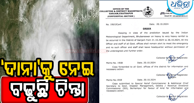 ଛତ୍ରପୁର, ୨୧।୧୦(ସନ୍ତୋଷ ପାଢ଼ୀ): ସମ୍ଭାବ୍ୟ ବାତ୍ୟା ଦାନାକୁ ନେଇ ଗଞ୍ଜାମ ଜ଼ିଲା ପ୍ରଶାସନ ପକ୍ଷରୁ ସମସ୍ତ ପ୍ରସ୍ତୁତି ଚାଲିଛି। ୨୬ ପର୍ଯ୍ୟନ୍ତ ଗଞ୍ଜାମ ଜ଼ିଲାର ସମସ୍ତ ସରକାରୀ ଅଧିକାରୀଙ୍କୁ ଛୁଟି ମନା କରାଯାଇଛି। ଏନେଇ ଗଞ୍ଜାମ ଜ଼ିଲାପାଳ ଦିବ୍ୟଜ୍ୟୋତି ପରିଡା ନିର୍ଦ୍ଦେଶନାମା ଜାରି କରିଛନ୍ତି। ବିନା ଅନୁମତିରେ ହେଡ଼ର୍କ୍ୱାର୍ଟର ଛାଡିବା ମନା ରହିଛି। ମତ୍ସ୍ୟଜୀବୀମାନଙ୍କୁ ସମୁଦ୍ର ମଧ୍ୟକୁ ମାଛ ଧରିବାକୁ ଯିବାକୁ ମନା କରାଯାଇଛି l ସାଗର ମିତ୍ରମାନେ ଗ୍ରାମକୁ ଗ୍ରାମ ବୁଲି ମତ୍ସ୍ୟଜୀବୀମାନଙ୍କୁ ସଚେତନତା କରିବା ସହ ସମୁଦ୍ର ଭିତରକୁ ଯିବାକୁ ବାରଣ କରିଛନ୍ତି। ଆଜିଠାରୁ ପରବର୍ତ୍ତୀ ନିର୍ଦ୍ଦେଶ ଆସିବା ପର୍ଯ୍ୟନ୍ତ ସମୁଦ୍ର ଭିତରକୁ ନ ଯିବା ପାଇଁ ମତ୍ସ୍ୟଜୀବୀମାନଙ୍କୁ ସଚେତନ କରିବା ସହିତ ନିଜ ଡ଼ଙ୍ଗା, ଜାଲ ଆଦିକୁ ସୁରକ୍ଷିତ ଭାବେ ବାନ୍ଧି ରଖିବା ପାଇଁ ଆର୍ଯ୍ୟପଲ୍ଲୀ ଗ୍ରାମର ମତ୍ସ୍ୟଜୀବୀମାନଙ୍କୁ ସଚେତନ କରାଯାଇଛି l