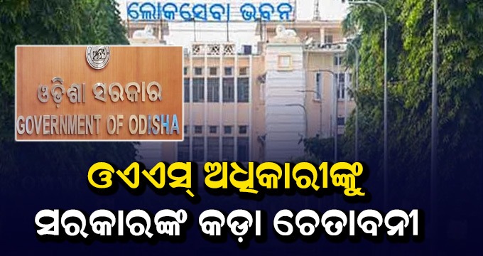 ଭୁବନେଶ୍ୱର,୮।୧୨: OAS ଅଫିସରଙ୍କୁ ସରକାରଙ୍କ ବଡ଼ା ଚେତାବନୀ । ବଦଳି ହୋଇ ନୂଆ ସ୍ଥାନରେ ଯୋଗ ଦେଉ ନ ଥିବା ଓଏଏସ ଅଧିକାରୀଙ୍କୁ ରାଜ୍ୟ ସରକାରଙ୍କ କଡା ଚେତାବନୀ । ୧୦ ତାରିଖ ସୁଦ୍ଧା ନୂଆ ସ୍ଥାନରେ ଯୋଗ ଦିଅ, ନଚେତ ୧୧ ତାରିଖରୁ ନିଲମ୍ବନ କରିବେ ସରକାର । ରାଜସ୍ବ ଓ ବିପର୍ଯ୍ୟୟ ପରିଚାଳନା ବିଭାଗ ପକ୍ଷରୁ ଏ ନେଇ ବିଜ୍ଞପ୍ତି ପ୍ରକାଶ କରାଯାଇଛି ।