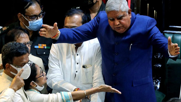 କୋଲକାତା,୮।୩: ପଶ୍ଚିମବଙ୍ଗ ବିଧାନସଭାରେ ସୋମବାର ବଜେଟ ଅଧିବେଶନର ପ୍ରଥମ ଦିନରେ ଅପ୍ରୀତିକର ସ୍ଥିତି ଦେଖିବାକୁ ମିଳିଥିଲା। ପୌର ନିର୍ବାଚନ ପରବର୍ତ୍ତୀ ହିଂସା ଘଟଣାକୁ ନେଇ ଭାଜପା ବିଧାୟକମାନେ ଗୃହ ମଧ୍ୟଭାଗରେ ହଟ୍ଟଗୋଳ କରିଥିଲେ। ରାଜ୍ୟପାଳ ଜଗଦୀପ୍‌ ଧନ୍‌ଖରଙ୍କୁ ତାଙ୍କ ଅଭିଭାଷଣ ରଖିବା ଲାଗି ମୁଖ୍ୟମନ୍ତ୍ରୀ ମମତା ବାନାର୍ଜୀ ଅନୁରୋଧ କରିଥିଲେ। ହଟ୍ଟଗୋଳ ଯୋଗୁ ରାଜ୍ୟପାଳ ଅଭିଭାଷଣ ପଢ଼ି ନ ପାରି ଗୃହ ଛାଡ଼ିବାକୁ ଯାଉଥିବାବେଳେ ଟିଏମ୍‌ସି କର୍ମୀମାନେ ତାଙ୍କୁ ଯିବାକୁ ଦେଇ ନ ଥିଲେ। ସେମାନେ ରାଜ୍ୟପାଳଙ୍କ ଆସନ ଚାରିପଟେ ଘେରି ରହିଥିଲେ। ଶେଷରେ ରାଜ୍ୟପାଳ ତାଙ୍କ ଅଭିଭାଷଣର ପ୍ରଥମ ଓ ଶେଷ ଧାଡ଼ି ପଢ଼ି ଗୃହ ଛାଡ଼ିଥିଲେ। ଏହା ଅଭୂତପୂର୍ବ ଓ ସାମ୍ବିଧାନିକ ସଙ୍କଟ ସୃଷ୍ଟି ଲାଗି ଯୋଜନାବଦ୍ଧ ଉଦ୍ୟମ ବୋଲି ମମତା କହିଛନ୍ତି। ନିର୍ବାଚନ ହାରିବା ପରେ ଏହା ଭାଜପାର ଡ୍ରାମାବାଜି ଥିଲା। ଏହା ଗଣତନ୍ତ୍ର ପାଇଁ ଲଜ୍ଜା ବୋଲି ଟିଏମ୍‌ସି ନେତ୍ରୀ କହିଛନ୍ତି।