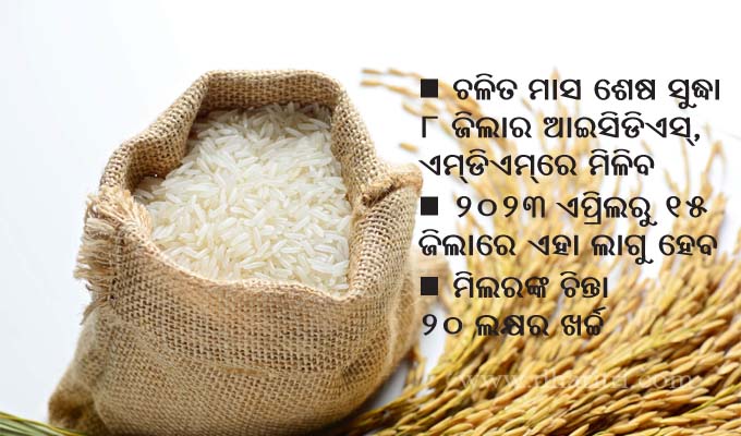 ସରକାରଙ୍କ ସୂଚନା ମୁତାବକ, ଆସନ୍ତାବର୍ଷ ଏପ୍ରିଲ ୨୩ରୁ ପ୍ରୋଟିନଯୁକ୍ତ ଚାଉଳ ଯୋଗାଇବାକୁ ଲକ୍ଷ୍ୟ ରଖାଯାଇଛି। ବିଭାଗୀୟ ମନ୍ତ୍ରୀ ଅତନୁ ସବ୍ୟସାଚୀ ନାଏକ କହିଛନ୍ତି, ଏହା ସମ୍ପୂର୍ଣ୍ଣ କେନ୍ଦ୍ର ସରକାରଙ୍କ ଯୋଜନା। କେନ୍ଦ୍ର ସରକାର ବିଭିନ୍ନ ରାଜ୍ୟରେ ବାଛିଥିବା ଆକାଂକ୍ଷା ଜିଲାରେ ଏହା ପ୍ରଥମେ ଲାଗୁ କରୁଛନ୍ତି। ପରବର୍ତ୍ତୀ ସମୟରେ ରାଜ୍ୟ ସରକାର ଏହାକୁ ଅନ୍ୟ ଜିଲାଗୁଡ଼ିକରେ ଲାଗୁ କରିବେ। ତେବେ ରାଜ୍ୟ ସରକାର ଜିଲା ଭିତରୁ ବିଭିନ୍ନ ସ୍ବୀକୃତିପ୍ରାପ୍ତ ସଂସ୍ଥାଠାରୁ ଉକ୍ତ ପ୍ରୋଟିନ୍ଯୁକ୍ତ ଚାଉଳ ଉଠାଇ ମିଲର୍ମାନଙ୍କୁ ଯୋଗାଇ ଦେବେ। ତା’ପରେ ମିଲର୍ମାନେ ମିଶ୍ରଣ କରି ପ୍ରଦାନ କରିବେ। ରାଜ୍ୟର ୮ ଆକାଂକ୍ଷା ଜିଲାରେ ଆଇସିଡିଏସ୍ ଏବଂ ଏମ୍ଡିଏମ୍ରେ ଚଳିତ ମାସ ଶେଷ ସୁଦ୍ଧା ଏହି ପ୍ରୋଟିନ୍ଯୁକ୍ତ ଚାଉଳ ଦିଆଯିବ। ମିଲରମାନେ ଜାତୀୟ ପରୀକ୍ଷଣ ଏବଂ ଅନୁସନ୍ଧାନ ପ୍ରୟୋଗଶାଳା ସ୍ବୀକୃତି ବୋର୍ଡ (ଏନ୍ଏବିଏଲ୍)ରୁ ଟେଷ୍ଟିଂ କରି ତାହା ରାଜ୍ୟ ସରକାରଙ୍କୁ ଯୋଗାଇବେ ବୋଲି ମନ୍ତ୍ରୀ କହିଛନ୍ତି।