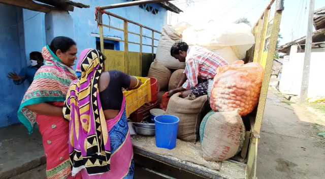 ଅନୁଗୋଳ ଜିଲା ଛେଣ୍ଡିପଦା ଗ୍ରାମର ବ୍ୟବସାୟୀ ରମେଶ ସାମଲଙ୍କ ଭ୍ରାମ୍ୟମାଣ ଦୋକାନ। ସେ କହିବାନୁଯାୟୀ ଏଭଳି ଗ୍ରାମାଞ୍ଚଳକୁ ଯାଇ ପନିପରିବା ତଥା ବିଭିନ୍ନ ପ୍ରକାରର ଖାଦ୍ୟ ସାମଗ୍ରୀ, ମୁଢି ଚୁଡ଼ା ଆଦି ବିକିଥାନ୍ତି ା ଗ୍ରାମାଞ୍ଚଳରେ ଟଙ୍କା ପଇସାର ଅଭାବ ଥିବାରୁ ସେସବୁର ମୂଲ୍ୟ ବାବଦକୁ ଟଙ୍କା ପଇସା ବଦଳରେ ଧାନ ଦେଇଥାନ୍ତି ା ଗ୍ରାମାଞ୍ଚଳର ଲୋକେ ସେମାନଙ୍କ ବଳକା ଧାନକୁ ବଦଳାଇ ସୁବିଧାରେ ଘର ପାଖରେ ଅତ୍ୟାବଶ୍ୟକୀୟ ସାମଗ୍ରୀ ପାଇ ଖୁସି ହୋଇଥାନ୍ତି। ରମେଶଙ୍କ ଭଳି ବହୁ ଛୋଟ ଛୋଟ ବ୍ୟବସାୟୀ ବିଭିନ୍ନ ଗ୍ରାମ ତଥା ସାପ୍ତାହିକ ହାଟ ବୁଲି ଧାନ/ଚାଉଳ ବଦଳରେ ବାସନ କୁସନ, ତେଲଲୁଣ ଆଦି ଅଦଳବଦଳ କରି ନେଇଥାନ୍ତି। ପଇସା ବଦଳରେ ଧାନ ଦେଉ ା ଏଣୁ ସୁବିଧାରେ ଓ ପାଖରେ ସବୁ କିଛି ମିଳୁଛି। ଫଳରେ ଏହି ଅଦଳବଦଳ ବ୍ୟବସ୍ଥା ଫଳପ୍ରଦ ହେଉଛି ବୋଲି ସ୍ଥାନୀୟ ଲୋକ କୁହନ୍ତି ା