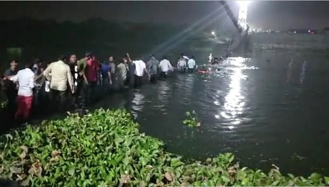 ମୋରବି ପୋଲ ଭୁଷୁଡିବା ଘଟଣାରେ ମୃତକଙ୍କ ସଂଖ୍ୟା ୧୦୦ ଟପିଲା, ୭୦ ଆହତ, ୫୦ରୁ ଅଧିକ ନିଖୋଜ