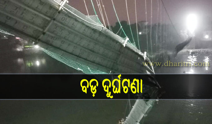 ଅହମ୍ମଦାବାଦ,୩୦।୧୦: ଗୁଜରାଟର ମୋର୍ବିରେ ରବିବାର ଏକ ବଡ଼ ଦୁର୍ଘଟଣା ଘଟିଛି। ଏଠାରେ ମଚ୍ଛୁ ନଦୀରେ ନିର୍ମିତ ଝୁଲା ପୋଲ ହଠାତ୍ ଭାଙ୍ଗି ଯାଇଛି। ଦୁର୍ଘଟଣା ସମୟରେ ପୋଲ ଉପରେ ଅନେକ ଲୋକ ଉପସ୍ଥିତ ଥିଲେ। ସମସ୍ତେ ସେଠାରେ ଛଠ୍ ପର୍ବ ପାଳନ ପାଇଁ ଏକତ୍ର ହୋଇଥିଲେ। ଏବେ ଉଦ୍ଧାର କାର୍ଯ୍ୟ ଚାଲିଛି। ନିକଟରେ ନବୀକରଣ ପରେ ଏହି ପୋଲକୁ କାର୍ଯ୍ୟକ୍ଷମ କରାଯାଇଥିଲା।