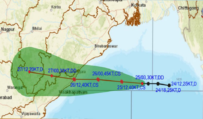 ମହାପାତ୍ର କହିଛନ୍ତି, ଗତକାଲି ସୃଷ୍ଟି ହୋଇଥିବା ଅବପାତଟି ସକାଳେ ଗଭୀର ଅବପାତରେ ପରିଣତ ହୋଇଛି। ଏହା ପାଖାପାଖି ପଶ୍ଚିମ ଦିଗକୁ ଗତି କରୁଛି। ଏହା ବର୍ତ୍ତମାନ ଗୋପାଳପୁରଠାରୁ ୪୭୦ କିଲୋମିଟର ଦୂରରେ ପୂର୍ବ-ଦକ୍ଷିଣପୂର୍ବ ଦିଗରେ କେନ୍ଦ୍ରୀଭୂତ ଅଛି। ଏହା ପଶ୍ଚିମ-ଉତ୍ତରପଶ୍ଚିମ ଦିଗରେ ଗତି କରିବ। ୨୬ ତାରିଖ ସା ପାଖାପାଖି ଏହା ଆନ୍ଧ୍ର ପ୍ରଦେଶର କଳିଙ୍ଗପଟ୍ଟନମ ଓ ଓ ଗୋପାଳପୁର ମଧ୍ୟରେ ଏହା ଉପକୂଳକୁ ଅତିକ୍ରମ କରିବ।