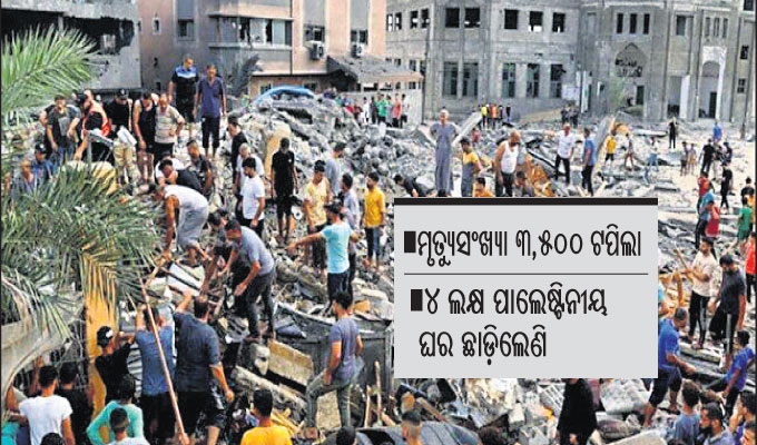 ଗୋଟିଏ ସପ୍ତାହ ବିତିଥିବାବେଳେ ମୃତ୍ୟୁସଂଖ୍ୟା ୩,୫୦୦ ଅତିକ୍ରମ କରିଛି। ଇସ୍ରାଏଲୀ ସେନାର କ୍ରମାଗତ ଏୟାରଷ୍ଟ୍ରାଇକ୍ରେ ଗାଜା ଷ୍ଟ୍ରିପ୍ର ୭୨୪ ଶିଶୁଙ୍କ ସମେତ ୨,୨୧୫ ଜଣ ପ୍ରାଣ ହରାଇଲେଣି। ସେହିପରି ହମାସ୍ ବିଦ୍ରୋହୀଙ୍କ ଆକ୍ରମଣରେ ୧,୩୦୦ରୁ ଅଧିକ ଇସ୍ରାଏଲୀ ନିହତ ହୋଇଥିବା ଜଣାପଡ଼ିଛି। ଉକ୍ତ ଅଞ୍ଚଳରେ ହିଂସା ବଢ଼ିବା ସହ ଉତ୍ତେଜନା ମଧ୍ୟପ୍ରାଚ୍ୟର ଅନ୍ୟାନ୍ୟ ଦେଶକୁ ବ୍ୟାପିବାରେ ଲାଗିଛି। ବିଭିନ୍ନ ସହରରେ ପାଲେଷ୍ଟିନୀୟଙ୍କ ସମର୍ଥନରେ ଓ ଇସ୍ରାଏଲ୍ର ଏୟାର ଷ୍ଟ୍ରାଇକ୍କୁ ନିନ୍ଦା କରି ବିକ୍ଷୋଭ ପ୍ରଦର୍ଶନ କରାଯାଉଛି। ବେରୁଟ୍, ଇରାକ, ଇରାନ, ଜୋର୍ଡାନ ଏବଂ ବାହାରିନ୍ରେ ପାଲେଷ୍ଟାଇନ୍ ସମର୍ଥନରେ ହଜାର ହଜାର ଲୋକ ବିକ୍ଷୋଭରେ ସାମିଲ ହୋଇଛନ୍ତି। ଇସ୍ରାଏଲ୍ ବୋମା ଓ ରକେଟ ମାଡ଼ ଜାରି ରଖିଥିବାବେଳେ ଆହତମାନଙ୍କ ଚିକିତ୍ସା ଲାଗି ଗାଜା ହସ୍ପିଟାଲଗୁଡ଼ିକରେ ସମସ୍ୟା ଦେଖାଦେଇଛି। ସେଠାର ସ୍ବାସ୍ଥ୍ୟସେବା ବ୍ୟବସ୍ଥା ଏକପ୍ରକାର ଅଚଳ ହୋଇପଡ଼ିଛି।