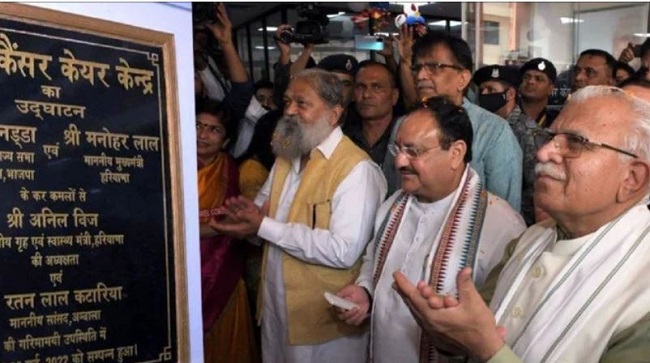 ଅମ୍ବାଲା,୧୦ ।୫: ହରିୟାଣାର ଅମ୍ବାଲାରେ କ୍ୟାନସର ରୋଗୀଙ୍କ ପାଇଁ ଛାବନି ନାଗରିକ ହସ୍ପିଟାଲରେ ନିର୍ମିତ ଅଟଳ କ୍ୟାନସର କେୟାର ସେଣ୍ଟର ଜନତାଙ୍କୁ ସମର୍ପିତ କରାଯାଇଛି । ଭାରତୀୟ ଜନତା ପାର୍ଟି(ଭାଜପା)ର ରାଷ୍ଟ୍ରୀୟ ଅଧ୍ୟକ୍ଷ ତଥା ରାଜ୍ୟସଭା ଏମପି ଜେପି ନଡ୍ଡା ସୋମବାର ୭୨.୧୧ କୋଟି ଟଙ୍କା ବ୍ୟୟରେ ନିର୍ମାଣ କରାଯାଇଥିବା ଏହି ହସ୍ପିଟାଲର ଶୁଭାରମ୍ଭ କରିଛନ୍ତି । ମୁଖ୍ୟମନ୍ତ୍ରୀ ମନୋହର ଲାଲ ଖଟ୍ଟର ଓ ଗୃହମନ୍ତ୍ରୀ ଅନିଲ ବିଜ ଉଦଘାଟନ ପରେ ହସ୍ପିଟାଲର ନିରିକ୍ଷଣ କରିଛନ୍ତି ।
