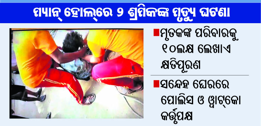 ସୂଚନାଯୋଗ୍ୟ, ଗତ ଶୁକ୍ରବାର ୩ଜଣ ଶ୍ରମିକ ପାଇପ୍ ସଂଯୋଗ ପାଇଁ ସେଠାରେ ପହଞ୍ଚତ୍ଥିଲେ। ଜଣେ ପରେ ଆଉଜଣେ ଶ୍ରମିକ ଭିତରକୁ ଯାଇ ନ ବାହାରିବାରୁ ଉପରେ ଥିବା ଅନ୍ୟଜଣେ ଘଟଣାସ୍ଥଳରୁ ପଳାଇଥିଲେ। ସ୍ଥାନୀୟ ଲୋକେ ଜାଣିବାବେଳକୁ ବହୁ ବିଳମ୍ବ ହୋଇଯାଇଥିଲା। ଅଗ୍ନିଶମ ବାହିନୀ ପହଞ୍ଚତ୍ ୨ଜଣଙ୍କୁ ଉଦ୍ଧାର କରି କ୍ୟାପିଟାଲ ହସ୍ପିଟାଲକୁ ପଠାଇଥିଲା। ସେଠାରେ ଡାକ୍ତର ସେମାନଙ୍କୁ ମୃତ ଘୋଷଣା କରିଥିଲେ। ମୃତକ ଶ୍ରମିକ ହେଲେ ଝାଡ଼ଖଣ୍ଡର ସୁନାରାମ ସର୍ଦ୍ଦାର(୫୫) ଓ ମୟୂରଭଞ୍ଜର ସିଲୁ ବିରୁଆ(୨୫)। ତେବେ ଅମ୍ଳଜାନ ଓ ଆବଶ୍ୟକ ସୁରକ୍ଷା ଉପକରଣ ନ ଥିବାରୁ ଦୁଇଟି ଜୀବନ ଅକାରଣରେ ଝଡ଼ିପଡ଼ିଥିଲା। ଏସବୁ କାମବେଳେ ଠିକା ସଂସ୍ଥା ସୁରକ୍ଷା ନିୟମ ଉଲ୍ଲଂଘନ କରିଥିବାବେଳେ ଓ୍ବାଟ୍କୋର ଅଧିକାରୀମାନେ ଠିକ୍ ଭାବେ ତଦାରଖ ନ କରିବାରୁ ଏହି ଘଟଣା ଘଟିଥିଲା।