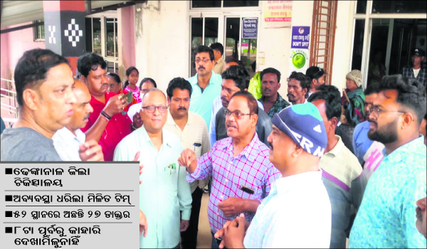 ଢେଙ୍କାନାଳ ଅଫିସ, ୨୫।୨: ସାତ ମହଲା କୋଠା। ଖର୍ଚ୍ଚ ହୋଇଛି ୫୦ କୋଟି ଟଙ୍କା। ତଳେ ଛିଡ଼ା ହୋଇ ଦେଖିଲେ ଆଖି ପାଉନାହିଁ। ବାହାରୁ ଝଟକୁଥିବା ଢେଙ୍କାନାଳ ଜିଲା ସ୍ବାସ୍ଥ୍ୟସେବାର ମୁଖ୍ୟ ପ୍ରତିଷ୍ଠାନର ଭିତର ଅବସ୍ଥା କିନ୍ତୁ ଜମାରୁ ଭଲ ନୁହେଁ। ରୋଗୀଙ୍କୁ ଗୁଣାତ୍ମକ ସେବା ପ୍ରଦାନ ତ ଦୂରର କଥା, ଖାଦ୍ୟ ମଧ୍ୟ ଠିକ୍ ସମୟରେ ଦିଆଯାଉନାହିଁ। ଅଧା ଡାକ୍ତର ପଦବୀ ଖାଲି ପଡ଼ିଛି। ୫୨ ସ୍ଥାନରେ ୨୭ ଡାକ୍ତର ଥିବାବେଳେ ସେମାନଙ୍କ ମଧ୍ୟରୁ ଅନେକଙ୍କ ପୂର୍ବାହ୍ନ ୮ଟା ପୂର୍ବରୁ ଦେଖାମିଳୁନାହିଁ। ଆବଶ୍ୟକ ସମୟରେ ସେବା ନ ପାଇ ରୋଗୀ କଲବଲ ହେଉଥିବା ଅଭିଯୋଗ ହୋଇଆସୁଛି। ଶୁକ୍ରବାର ସକାଳେ ୭ଟାରେ ଜିଲା ଓକିଲ ସଂଘ ଆହ୍ବାନରେ ଜିଲା ଶିଳ୍ପ ଓ ବାଣିଜ୍ୟ ସଂଘ, ଜିଲା ସାମ୍ବାଦିକ ସଂଘ, ସଚେତନ ନାଗରିକ ଫୋରମ୍ ଏବଂ ବୁଦ୍ଧିଜୀବୀଙ୍କ ଏକ ମିଳିତ ଟିମ୍ର ଅଚାନକ ପରିଦର୍ଶନ ଢେଙ୍କାନାଳ ଜିଲା ସ୍ବାସ୍ଥ୍ୟକେନ୍ଦ୍ରର ବାସ୍ତବତାକୁ ପଦାକୁ ଆଣିଛି। ଖୁବ୍ଶୀଘ୍ର ସ୍ବାସ୍ଥ୍ୟସେବାରେ ସୁଧାର ନ ଆସିଲେ ଆନ୍ଦୋଳନ ଜୋର୍ଦାର କରାଯିବ ବୋଲି ବୁଦ୍ଧିଜୀବୀମାନେ ଚେତାବନୀ ଦେଇଛନ୍ତି।