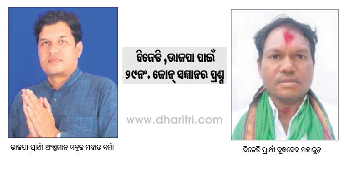 ପାଟଣା,୧୩।୨(ସ୍ବ.ପ୍ର.) କେନ୍ଦୁଝର ଜିଲା ପାଟଣା ନିର୍ବାଚନ ମଣ୍ଡଳୀ ଅନ୍ତର୍ଗତ ସାହାରପଡ଼ା ବ୍ଲକ ୨୯ନଂ. ଜିଲା ପରିଷଦ ଜୋନ୍କୁ ହାତେଇବା କ୍ଷମତାସୀନ ବିଜେଡି ଓ ବିରୋଧୀ ଭାଜପା ପାଇଁ ସମ୍ମାନର ପ୍ରଶ୍ନ ହୋଇଛି। ଭାଜପା ଜିଲା ସଭାପତି ଅଂଶୁମାନ ସବୁଜ ମହାନ୍ତ ବର୍ମା ଏଠାରୁ ଲଢ଼ୁଥିବା ବେଳେ ନବାଗତ ବୁଦ୍ଧଦେବ ମହାକୁଡ଼ଙ୍କୁ ବିଜେଡି ପ୍ରାର୍ଥୀ କରିଛି। ଉଭୟ ଦଳର ହେଭିଓ୍ବେଟ ନେତା ଦଳୀୟ ପ୍ରାର୍ଥୀଙ୍କ ପାଇଁ ଜୋରଦାର ପ୍ରଚାରରେ ଲାଗି ପଡ଼ିଛନ୍ତି।
