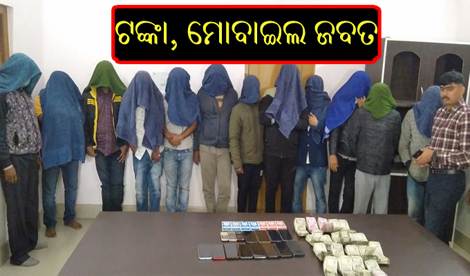 ରାଉରକେଲା ଅଫିସ,୧୯ା୧୨: ଇସ୍ପାତ ସହରସ୍ଥିତ ଏକ ହୋଟେଲରେ ହାଇ-ପ୍ରୋଫାଇଲ ଜୁଆ ଖେଳ ଚାଲିଥିବା ବେଳେ ପ୍ଲାଣ୍ଟ ସାଇଟ ଥାନା ପୋଲିସ ଅତର୍କିତ ଚଢ଼ାଉ କରି ୧୨ ଜଣଙ୍କୁ ଗିରଫ କରିଛି। ଗିରଫ ଅଭିଯୁକ୍ତମାନେ ହେଲେ, ଶୁଭକାନ୍ତ ବେହେରା, ସରୋଜ ଅଗ୍ରୱାଲ, ରାଜୁ ଅଗ୍ରୱାଲ, ପିତର ଖେସ, ଲଖନ ମିଞ୍ଜ, ଦିନେଶ ଜୟସଓ୍ବାଲ, ପରେଶ ସାହୁ, ସୁଧୀର କେଡ଼ିଆ, ଶଙ୍କରଲାଲ ସାହୁ, ଧର୍ମେନ୍ଦ୍ର ଶର୍ମା, ନାଗରମଲ ଅଗ୍ରୱାଲ ଓ ବିଜୟ ବେହେରା। ଏମାନଙ୍କ ଠାରୁ ୨ଟି କାର୍, ୫ଟି ବାଇକ ଓ ୧୫ଟି ମୋବାଇଲ ଜବତ ହୋଇଛି।