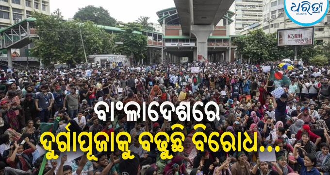 ଢାକା,୨୬।୯: ବାଂଲାଦେଶରେ ରହୁଥିବା ହିନ୍ଦୁ ସମୁଦାୟଙ୍କ ଚିନ୍ତା ବଢ଼ିବାରେ ଲାଗିଛି। ଦୁର୍ଗାପୂଜା ପାଖେଇ ଆସୁଥିବା ବେଳେ ବାଂଲାଦେଶର କଠୋରପନ୍ଥୀ ଇସ୍ଲାମିକ ସଙ୍ଗଠନଗୁଡ଼ିକ ପକ୍ଷରୁ ଏହି ସାର୍ବଜନୀନ ଉତ୍ସବକୁ ବିଭିନ୍ନ ଉପାୟରେ ବିରୋଧ କରାଯାଉଛି। ସେହିପରି ଦୁର୍ଗାପୂଜା ଅବସରରେ ଦେଶବ୍ୟାପୀ ଛୁଟି ଘୋଷଣାକୁ ମଧ୍ୟ ଇସ୍ଲାମିକ ସଙ୍ଗଠନଗୁଡ଼ିକ ବିରୋଧ କରିଛନ୍ତି। ଗୁରୁବାର ଏହି ଦାବିକୁ ନେଇ ‘ଇନ୍ସାଫ କିମ୍କାରୀ ଛାତ୍ର ଜନତା’ ନାମକ ଏକ କଠୋରପନ୍ଥୀ ଇସ୍ଲାମିକ ସଙ୍ଗଠନ ଢାକାର ସେକ୍ଟର-୧୩ ଅଞ୍ଚଳରେ ଶୋଭାଯାତ୍ରା କରିବା ସହ ପ୍ରତିବାଦ ସଭାର ଆୟୋଜନ କରିଛି। ଢାକାର ଏକ ଖେଳ ପଡ଼ିଆରେ ଦୁର୍ଗାପୂଜା ପାଇଁ ହିନ୍ଦୁମାନଙ୍କ ପକ୍ଷରୁ ଚାଲିଥିବା ପେଣ୍ଡାଲ ପ୍ରସ୍ତୁତିକୁ ମଧ୍ୟ ଏହି ସଙ୍ଗଠନ ବିରୋଧ କରିଛି। ‘ଇନ୍ସାଫ କିମ୍କାରୀ ଛାତ୍ର ଜନତା’ର ସଦସ୍ୟମାନେ ବିଭିନ୍ନ ପ୍ରକାର ବ୍ୟାନର ସହ ଗୁରୁବାର ପ୍ରତିବାଦ କରିଛନ୍ତି।