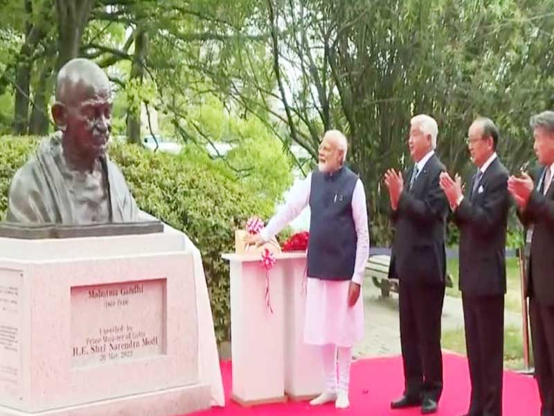 ଟୋକିଓ,୨୦।୫ : ଶନିବାର ହିରୋସୀମାରେ ମହାତ୍ମା ଗାନ୍ଧୀଙ୍କ ଆବକ୍ଷ ପ୍ରତିମାକୁ ମଧ୍ୟ ପ୍ରଧାନମନ୍ତ୍ରୀ ନରେନ୍ଦ୍ର ମୋଦି ଉନ୍ମୋଚନ କରିଛନ୍ତି।