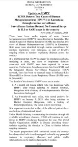 ନୂଆଦିଲ୍ଲୀ,୬।୧: ଚାଇନାରେ ଏଚଏମପିଭି ଭାଇରସ ଦ୍ରୁତ ଗତିରେ ବ୍ୟାପିବାରେ ଲାଗିଛି। ବର୍ତ୍ତମାନ ସେହି ଭାଇରସ ଚାଇଡ଼ାରୁ ବ୍ୟାପୀ ୩ଟି ଦେଶରେ ପ୍ରଭାବ ବିସ୍ତାର ବରିଛି। ଚାଇନାରୁ ଆସିଥିବା ଏଚଏମପିଭ ଜୀବାଣୁ ବର୍ତ୍ତମାନ ଭାରତରେ ଏଣ୍ଟ୍ରି କରିଛି। ଭାରତରେ ଏକକାଳୀନ ଏଚଏମପିଭିର ଦୁଇଟି ମାମଲା ଦେଖିବାକୁ ମିଳିଛି। ତିନି ମାସ ଓ ଆଠ ମାସ ବୟସର ଦୁଇ ପିଲାଙ୍କ ମଧ୍ୟରେ ଏଚଏମପିଭିର ଚିହ୍ନଟ ହୋଇଛି। ଏଚଏମପିଭିର ଏହି ଦୁଇଟି ମାମଲାର ଆବିଷ୍କାର ଏବେ ସାରା ଦେଶରେ ଆଲୋଡ଼ନ ସୃଷ୍ଟି କରିଛି ।