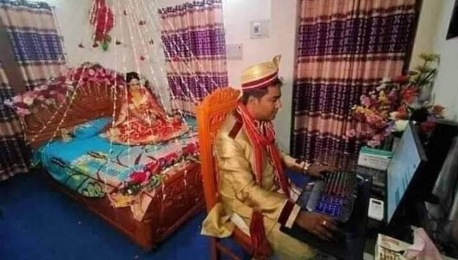ଶେଜରେ ନବ ବିବାହିତା ଅପେକ୍ଷା କରିଥିବାବେଳେ ବର କମ୍ପ୍ୟୁଟରରେ ମଜି ରହିଛି। ଏଭଳି ଏକ ଫଟୋ ଭାଇରାଲ ହେଉଛି, ଯାହାକୁ ନେଇ ସୋସିଆଲ ମିଡିଆରେ ଏବେ ଖୁବ୍ ମିମ୍ସ ଚାଲିଛି। ଏହି ଫଟୋ ଶେୟାର ହେବାର ଗୋଟିଏ ଦିନରେ ପରିଣତ ହୋଇଛି ମିମ୍ସରେ। ଜଣେ ୟୁଜର ଲେଖିଛନ୍ତି, ‘ଅପେକ୍ଷା କର, ମୋତେ ମୋ ସର୍ଚ୍ଚ ହିଷ୍ଟ୍ରି ଡିଲିଟ୍ କରିବାକୁ ଦିଅ।’ ଏହି ଫଟୋକୁ ନେଇ ବହୁ ମଜାଦାର ମିମ୍ସ ସୋସିଆଲ ମିଡିଆରେ ଦେଖିବାକୁ ମିଳୁଛି।