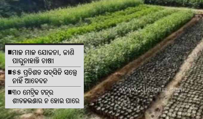 ଆଉ ଗୋଟିଏ ୩୦ ମେଟ୍ରିକ ଟନର ଶୀତଳ ଭଣ୍ଡାର ପ୍ରତିଷ୍ଠା ପାଇଁ ପ୍ରୟାସ ଚାଲିଛି। ଚାଷୀ ଆଗ୍ରହ ପ୍ରକାଶ କଲେ ଆମେ ଏହାକୁ ପ୍ରତିଷ୍ଠା କରିବାକୁ ଆଗ୍ରହୀ ଅଛୁ ବୋଲି କହିଛନ୍ତି ।