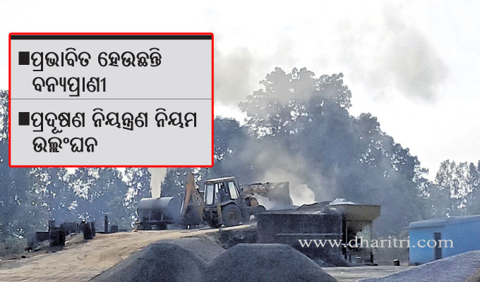 କେନ୍ଦୁଝର,୬ା୧(ସ୍ବ.ପ୍ର.): କେନ୍ଦୁଝର ସଦର ବ୍ଲକ୍ ରଘୁନାଥପୁର ରାଜସ୍ବ ନିରୀକ୍ଷକଙ୍କ ଅଧୀନ ବଡ଼ ମନୋହରପୁର ନିକଟ ସଂରକ୍ଷିତ ଶାଳ ଜଙ୍ଗଲ ନିକଟରେ ବେଆଇନ ହଟ୍ ମିକ୍ସ ପ୍ଲାଣ୍ଟ୍ ଚାଲୁଛି। ଏଥିସହ ଉକ୍ତ ସ୍ଥାନରେ ବିନା ପ୍ରଦୂଷଣ ନିୟନ୍ତ୍ରଣରେ ଏକ ଚିପ୍ସ କ୍ରଶର ମଧ୍ୟ ଚାଲୁଥିବାରୁ ଶବ୍ଦ ଓ ବାୟୁ ପ୍ରଦୂଷଣ ବଢ଼ିବାରେ ଲାଗିଛି। ପ୍ରଦୂଷଣ ନିୟନ୍ତ୍ରଣ ନିୟମ ଅନୁଯାୟୀ ଧୂଳିଧୂଆଁରୁ ରକ୍ଷା ପାଇଁ ଚାରିଆଡ଼େ ଉଚ୍ଚ ପାଚେରି (ୱିଣ୍ଡ୍ ବ୍ରେକିଂ ୱାଲ) କିମ୍ବା ସବୁଜ ବଳୟ ନାହିଁ। ସେହିପରି ବାୟୁ ପ୍ରଦୂଷଣ ରୋକିବା ପାଇଁ ନିୟମିତ ପାଣି ସିଞ୍ଚନ ହେଉନି। ଫଳରେ ପଥର ଗୁଣ୍ଡ ଉଡ଼ି ଚାରିଆଡ଼େ ପଡୁଥିବାରୁ ଜଙ୍ଗଲରେ ହାତୀ ସମେତ ଅନ୍ୟ ଜଙ୍ଗଲୀ ପ୍ରାଣୀ ପ୍ରଭାବିତ ହେଉଛନ୍ତି। ସ୍ଥାନୀୟ ଲୋକେ ମଧ୍ୟ ଧୂଳିଧୂଆଁରେ ଅତିଷ୍ଠ ହୋଇ କାର୍ଯ୍ୟାନୁଷ୍ଠାନ ଦାବି କରିଛନ୍ତି।