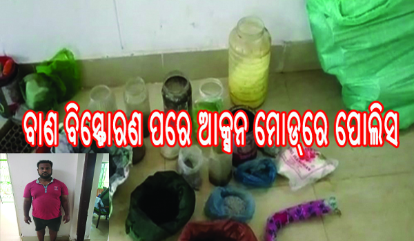 ନିରାକାରପୁର,୭।୩(ଡି.ଏନ୍.ଏ.): ଖୋର୍ଦ୍ଧା ଜିଲା ନିରାକାରପୁର ଥାନା ଅଧୀନ ଡିଆ ପଞ୍ଚାୟତ ଭୋଇସାହି ଗ୍ରାମରେ ସୋମବାର ରାତିରେ ପୋଲିସ ଚଢ଼ାଉ କରି ବିପୁଳ ପରିମାଣର ବାଣ ସାମଗ୍ରୀ ଜବତ କରିବା ସହ ଜଣଙ୍କୁ ଉଠେଇ ନେଇ ଥାନାରେ ଅଟକ ରଖିଥିଲା। ମଙ୍ଗଳବାର ତାଙ୍କୁ ଗିରଫ ପରେ କୋର୍ଟ ଚାଲାଣ କରାଯାଇଛି।