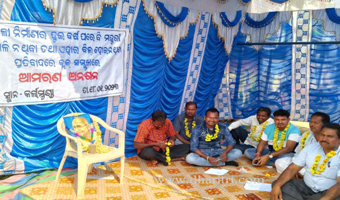 ସୂଚନାଯୋଗ୍ୟ, କର୍ଲାମୁଣ୍ଡା ବ୍ଲକର ୧୨ଟି ପଞ୍ଚାୟତର ବିଭିନ୍ନ ସ୍ଥାନରେ ଧାନଖଳା ନିର୍ମାଣ ପାଇଁ ପ୍ରତି ଖଳାକୁ ୭ ଲକ୍ଷ ୩୨ ହଜାର ଟଙ୍କା ଲେଖାଏ ମୋଟ୍ ୮୭ ଲକ୍ଷ ୮୪ ହଜାର ଟଙ୍କା ଅନୁଦାନ ଆସିଥିଲା। ଏଥିରେ ବ୍ଲକର ତେରେସିଂହା କଲୋନୀପଡ଼ା, କର୍ଲାମୁଣ୍ଡା ପଞ୍ଚାୟତର କର୍ଲାମୁଣ୍ଡା ବସ୍ତି ପାଣି ପଞ୍ଚାୟତ କାର୍ଯ୍ୟାଳୟ ନିକଟସ୍ଥ, ଗଜବାହଲ ପଞ୍ଚାୟତର ଅବୁଜବାହାଲ ଡୁଙ୍ଗୁରୀ, ରିଞ୍ଜା ପଞ୍ଚାୟତର ରେଙ୍ଗାଲି, ରେଗଡ଼ା ପଞ୍ଚାୟତର ରେଗଡ଼ା, ଯୋରାଡବ୍ରା ପଞ୍ଚାୟତର ଯୋରାଡବ୍ରାଠାରେ ନିର୍ମାଣ ହୋଇଥିଲା। କାର୍ଯ୍ୟ ଶେଷ ହେବାର ୨ ବର୍ଷରୁ ଊର୍ଦ୍ଧ୍ୱ ଦିନ ବିତିଯାଇଥିଲେ ମଧ୍ୟ କାମ କରିଥିବା ଶ୍ରମିକ, ମେଟ୍ ଓ ବିଭିନ୍ନ ସାମଗ୍ରୀ ଓ ତଥା ଭଡ଼ା ବାବଦକୁ ଟଙ୍କା ପାଉ ନ ଥିବାରୁ ମେଟ୍ମାନେ ଆମରଣ ଅନଶନରେ ବସିଥିବା କପିନ୍ଦ୍ର ରଣା, ବିରଞ୍ଚତ୍ ରଣା, ଶଶିଭୂଷଣ ସାହୁ, ଉତ୍ତମ ରଣା, ଅର୍ଜୁନ ସାହୁ ପ୍ରମୁଖ କହିଛନ୍ତି। ତେବେ ଖବର ଲେଖାହେବା ସୁଦ୍ଧା ଆମରଣ ଅନଶନ ସ୍ଥଳରେ କୌଣସି ବ୍ଲକ ଅଧିକାରୀ ଆସି ନ ଥିବା ଦୁର୍ଭାଗ୍ୟର ବିଷୟ ବୋଲି ଅନଶନକାରୀମାନେ କହିଛନ୍ତି। ଅନ୍ୟପକ୍ଷରେ ଗତ ସେପ୍ଟେମ୍ବରରେ ଉକ୍ତ ବ୍ୟକ୍ତିମାନେ ବ୍ଲକ ସମ୍ମୁଖରେ ଧାରଣାରେ ବସିଥିଲେ ଓ ତତ୍କାଳୀନ ବିଡିଓ ପ୍ରିୟଦର୍ଶନୀ ମିର୍ଦ୍ଧା ୧ ମାସ ମଧ୍ୟରେ ପଦକ୍ଷେପ ନିଆଯିବ ବୋଲି କହିବା ପରେ ଧାରଣା ପ୍ରତ୍ୟାହୃତ ହୋଇଥିଲା। ଏନେଇ ସ୍ଥାନୀୟ ବିଡିଓ ସୁଚରିତା ମୁଗ୍ରୀଙ୍କୁ ଯୋଗାଯୋଗ କରାଯାଇଥିଲେ ମଧ୍ୟ ଫୋନ ଗ୍ରହଣ କରୁ ନ ଥିବାରୁ ତାଙ୍କ ପ୍ରତିକ୍ରିୟା ନିଆଯାଇପାରିନାହିଁ।