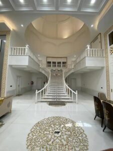 ଘରର ବର୍ଗକ୍ଷେତ୍ର ହେଉଛି (90X 90)। ମୌଳିକ ଗଠନ ହେଉଛି (60X60)। ଉଚ୍ଚତା ୨୯ ଫୁଟ ଉଚ୍ଚ ଅଟେ। ବେଙ୍ଗଲ ଏବଂ ଇନ୍ଦୋରର କାରିଗରମାନଙ୍କୁ ଘର ଖୋଦନ ପାଇଁ ଡକାଯାଇଥିଲା। ରାଜସ୍ଥାନର ମାକ୍ରାନାର କାରିଗରମାନେ ଘରର ଚଟାଣ କରିସାରିଛନ୍ତି। ଘରେ ଥିବା ଆସବାବପତ୍ର ସୁରଟ ଏବଂ ମୁମ୍ବାଇର କାରିଗରମାନଙ୍କ ଦ୍ୱାରା ପ୍ରସ୍ତୁତ କରାଯାଇଛି। ଏହି ଘର ନିର୍ମାଣ ପାଇଁ ଆଗ୍ରାର ଉତ୍କୃଷ୍ଟ କାରିଗରମାନଙ୍କ ସାହାଯ୍ୟ ମଧ୍ୟ ନିଆଯାଇଛି।