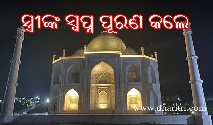ମଧ୍ୟପ୍ରଦେଶରେ ରହୁଥିବା ଶିକ୍ଷାବିତ୍ ଆନନ୍ଦ ପ୍ରକାଶ ଚକ୍ସି ତାଙ୍କ ସ୍ତ୍ରୀଙ୍କୁ ଏକ ଘର ଉପହାର ଦେଇଛନ୍ତି। ଏହି ଘରଟି ଦେଖିବାକୁ ତାଜମହଲ ପରି।