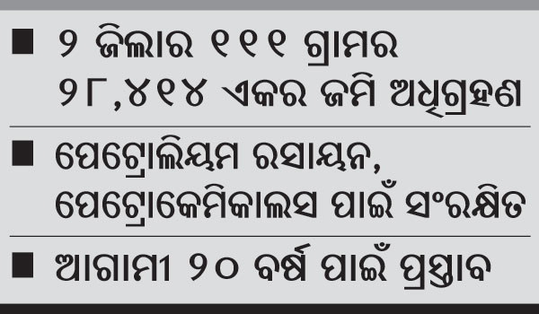 ପାରାଦୀପ,୩୦ା୧୨(ସ୍ବ.ପ୍ର.): ଜଗତସିଂହପୁର ଓ କେନ୍ଦ୍ରାପଡା ଜିଲାର ୧୧୧ଟି ଗ୍ରାମ ସୀମାରେ ଓଡ଼ିଶା ଶିଳ୍ପ ଭିତ୍ତିଭୂମି ନିଗମ (ଇଡ୍କୋ) ୨୮୪.୧୫ ଲକ୍ଷ ବର୍ଗ ମିଟର ବା ୨୮,୪୧୪ ଏକର ଜମି ଅଧିଗ୍ରହଣ କରିବାକୁ ଯାଉଛି। ସେଥିପାଇଁ ବୁଧବାର ପାରାଦୀପ ମଧୁବନ ପୌର କଲ୍ୟାଣମଣ୍ଡପଠାରେ ଇଡ୍କୋର ଜମି ବ୍ୟାଙ୍କ ପାଇଁ ଜନଶୁଣାଣି ହୋଇଥିଲା। ଇଡ୍କୋ ଓ ଜଗତ୍ସିଂହପୁର ଜିଲା ପ୍ରଶାସନ ପକ୍ଷରୁ ଆୟୋଜିତ ଜନଶୁଣାଣିରେ ପ୍ରାୟ ଅର୍ଦ୍ଧାଧିକ ଲୋକ ପ୍ରକଳ୍ପକୁ ସମର୍ଥନ କରିଥିଲେ। ଏଥିରେ ଅତିରିକ୍ତ ଜିଲାପାଳ କାହ୍ନୁଚରଣ ଧୀର, ରାଜ୍ୟ ପ୍ରଦୂଷଣ ନିୟନ୍ତ୍ରଣ ବୋର୍ଡର ଆଞ୍ଚଳିକ ଅଧିକାରୀ ଦିଲୀପ କୁମାର ଦାସ ଉପସ୍ଥିତ ରହି ଲୋକଙ୍କ ମତ ଶୁଣିଥିଲେ। ଇଡ୍କୋର ସିଜେଏମ୍ ଅଶୋକ ମିଶ୍ର ଓ ଆଞ୍ଚଳିକ ମୁଖ୍ୟ ଆର. କେ. ମହାପାତ୍ର ପ୍ରସ୍ତାବିତ ଜମି ଅଧିଗ୍ରହଣ ସମ୍ପର୍କରେ ସୂଚନା ଦେଇଥିଲେ। ଏହି ପ୍ରସ୍ତାବିତ ଓ ପେଟ୍ରୋଲିୟମ ରସାୟନ ଓ ପେଟ୍ରୋକେମିକାଲ୍ସ ପ୍ରକଳ୍ପ ପାଇଁ ୨୦୦୭ରୁ ରାଜ୍ୟ ସରକାର ପ୍ରସ୍ତାବ ରଖିଛନ୍ତି। ଜିଲାର ଏରସମା ବ୍ଲକରେ ୨୬ ଗ୍ରାମ, କୁଜଙ୍ଗର ୨୧ ଗ୍ରାମ, କେନ୍ଦ୍ରାପଡ଼ା ଜିଲା ମାର୍ଶାଘାଇ ବ୍ଲକର ୧୨ ଗ୍ରାମ ଓ ମହାକାଳପଡ଼ାର ୫୨ ଗ୍ରାମ ଅଞ୍ଚଳରେ ଜମି ଅଧିଗ୍ରହଣ ହେବ। ଏହା ଆସନ୍ତା ୨୦ ବର୍ଷ ମଧ୍ୟରେ କରାଯିବ। ଉକ୍ତ ଅଞ୍ଚଳରେ ଜମି ଅଧିଗ୍ରହଣ କରାଯାଇ ଇଡ୍କୋର ଜମି ବ୍ୟାଙ୍କରେ ରଖାଯିବ। ଏସବୁ ଜମିରେ ପେଟ୍ରୋକେମିକାଲସ ପ୍ରକଳ୍ପ କରାଯିବ। ଏଥିପାଇଁ କଞ୍ଚାମାଲ ପାରାଦୀପ ତୈଳ ବିଶୋଧନାଗାରରୁ ମିଳିବ। ପଣ୍ୟ କାରବାର ପାଇଁ ପାରାଦୀପ ବନ୍ଦର ରହିଛି। ଇଡ୍କୋ ଜମି ନେବା ପରେ ସେହି ଅଞ୍ଚଳର ଭିତ୍ତିଭୂମି (ରାସ୍ତା, ଟ୍ରେନ ଲାଇନ, ବିଦ୍ୟୁତ୍ ସଂଯୋଗ, ପାଣି ବ୍ୟବସ୍ଥା) ଆଦି କରିବ। ଯେଉଁମାନେ ଶିଳ୍ପ କରିବାକୁ ଆସିବେ ସେମାନଙ୍କ ପାଇଁ ଆଉ ଜମିର ଅସୁବିଧା ରହିବ ନାହିଁ। ଏସବୁ ଅଞ୍ଚଳରେ ୧୬,୪୮୨ କୋଟି ଟଙ୍କା ବିନିଯୋଗ ହେବ। ଏଥିରେ ପ୍ରତ୍ୟକ୍ଷ ଓ ପରୋକ୍ଷ ଭାବେ ୪ ଲକ୍ଷ ଲୋକ ନିଯୁକ୍ତି ସୁଯୋଗ ପାଇବେ। ଏହିସବୁ ଅଞ୍ଚଳରେ ପେଟ୍ରୋକେମିକାଲସ ପ୍ରକଳ୍ପ ପାଇଁ ହାଇଦ୍ରାବାଦର ଏନ୍ଭାରନମେଣ୍ଟ ପ୍ରୋଟେକସନ୍ ଟ୍ରେନିଂ ଆଣ୍ଡ ରିସର୍ଚ୍ଚ ଇନଷ୍ଟିଚ୍ୟୁଟ ପକ୍ଷରୁ ହୋଇଥିବା ରିପୋର୍ଟରେ ଦର୍ଶାଯାଇଛି ଯେ, ଏହା କୌଣସି ପରିବେଶୀୟ କ୍ଷତି ସାଧନ ହେବନାହିଁ। ଏଥିପାଇଁ କେବଳ ସରକାରୀ ଓ କେତେକ ଚାଷଜମି ନିଆଯିବ। ଘରବାଡି ପୂର୍ବବତ ରହିବ। ଶିଳ୍ପ ପ୍ରତିଷ୍ଠା ପୂର୍ବରୁ ଅଞ୍ଚଳର ବେକାରି ଯୁବତୀଯୁବକଙ୍କୁ ଦକ୍ଷତା ବିକାଶ ପାଇଁ ତାଲିମ ଦିଆଯିବ ବୋଲି କୁହାଯାଇଛି।