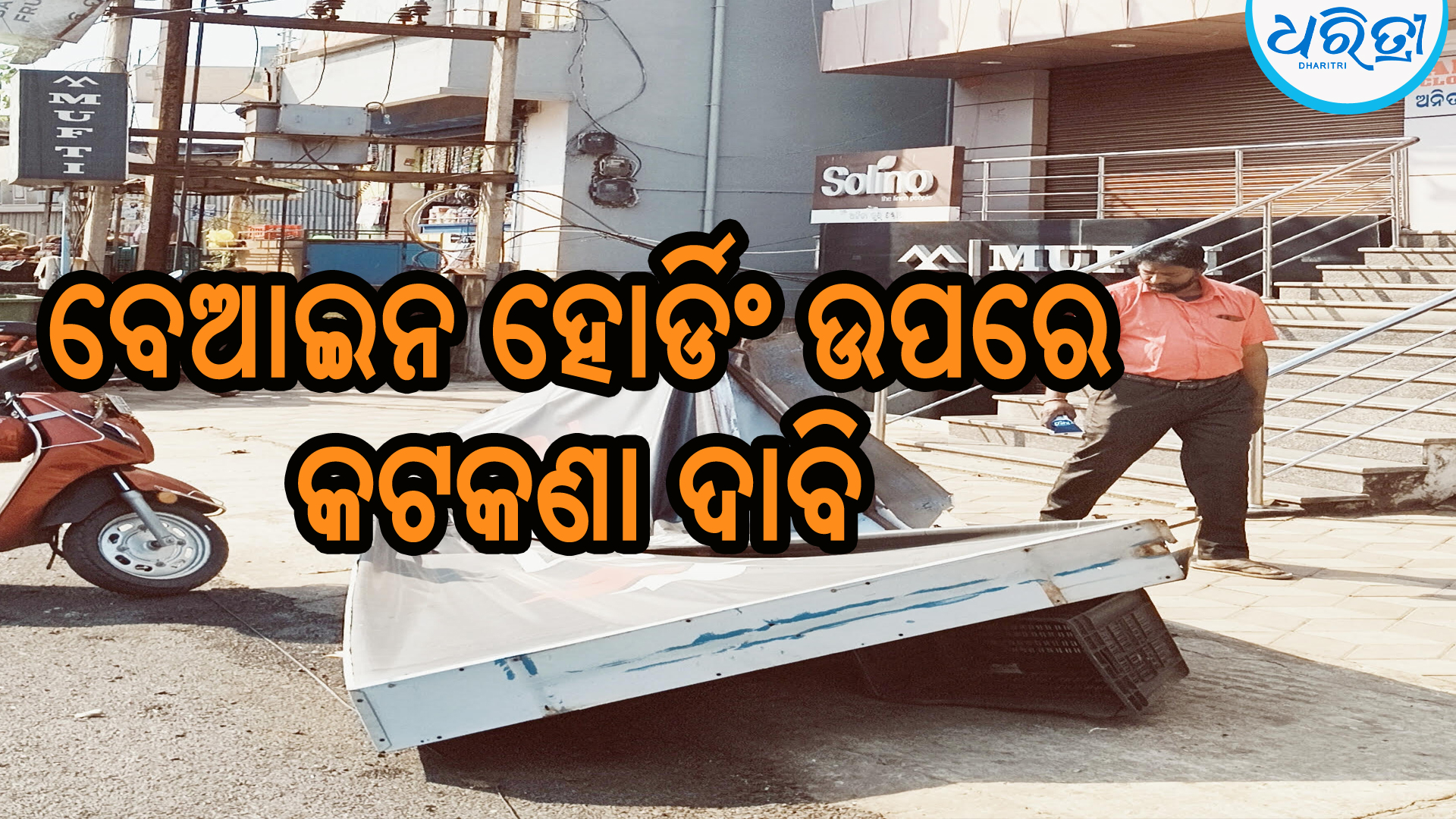 କେନ୍ଦୁଝର,୨୯।୩(ନରେଶ ଚନ୍ଦ୍ର ପଟ୍ଟନାୟକ): କେନ୍ଦୁଝର ସହରରେ ଅସୁରକ୍ଷିତ ଏବଂ ବେଆଇନ ହୋର୍ଡିଂ ବିପଦ ସୃଷ୍ଟି କରୁଛି। କାଳବୈଶାଖୀ ଯୋଗୁ ସହରର ଗାନ୍ଧୀ ଛକ ନିକଟ ଅନିତା ଲୁଗା ଦୋକାନ ନିକଟରେ ହୋର୍ଡିଂ ଚିରି ବିଦ୍ୟୁତ୍ ଟ୍ରାନ୍ସଫର୍ମରରେ ପଡ଼ିଥିଲା।