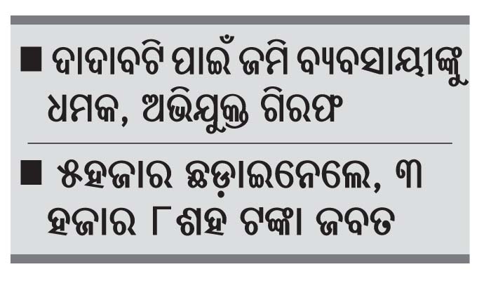 ସୂଚନାନୁସାରେ, ଅଭିଯୋଗକାରୀ ପ୍ରଫୁଲ୍ଲ କୁମାର ମୁଦୁଲି ଜମି ବ୍ୟବସାୟ କରନ୍ତି। ଅଭିଯୁକ୍ତ ଜଣକ ତାଙ୍କୁ ଦାଦାବଟି ବାବଦକୁ ୫୦ ହଜାର ମାଗିଥିଲେ। କିନ୍ତୁ ପ୍ରଫୁଲ୍ଲ ଦାଦାବଟି ଦେବାକୁ ରୋକଠୋକ ମନା କରିଦେଇଥିଲେ। ଫଳରେ ଅଭିଯୁକ୍ତ ଦେବାଶିଷ ବୁଧବାର ପ୍ରଫୁଲ୍ଲଙ୍କୁ ଗଙ୍ଗୁଆ ପୋଲ ଉପରେ ଅଟକାଇ ଅଶାଳୀନ ଭାଷାରେ ଗାଳିଗୁଳଜ କରିଥିଲେ। ଏହାକୁ ପ୍ରଫୁଲ୍ଲ ବିରୋଧ କରିବାରୁ ଅଭିଯୁକ୍ତ ଦେବାଶିଷ ତାଙ୍କୁ ବାରମ୍ବାର ଧକ୍କା ମାରିବା ସହ ଧମକ ଦେଇଥିଲେ। ଏପରିକି ତାଙ୍କ ଶାର୍ଟ ପକେଟରୁ ୫ ହଜାର ୨ଶହ ଟଙ୍କା ଛଡାଇ ନେଇଥିଲେ ବୋଲି ପ୍ରଫୁଲ୍ଲ ତାଙ୍କ ଅଭିଯୋଗପତ୍ରରେ ଉଲ୍ଲେଖ କରିଥିଲେ। ପୋଲିସ ଏନେଇ ଏକ ମାମଲା ରୁଜୁ କରି ତଦନ୍ତ ଆରମ୍ଭ କରିବା ସହ ତୁରନ୍ତ କାର୍ଯ୍ୟାନୁଷ୍ଠାନ ନେଇଛି। ହେଲେ ସେ ବାରମ୍ବାର ଏପରି ଅପରାଧ ଘଟାଇ ଜେଲ୍ ଯାଉଥିଲେ ମଧ୍ୟ ବେଲ୍ରେ ଆସିବା ପରେ ପୁଣି ଦାଦାବଟି ମାଗୁଥିବାରୁ ଦୃଢ଼ କାର୍ଯ୍ୟାନୁଷ୍ଠାନର ଆବଶ୍ୟକତା ରହିଛି।