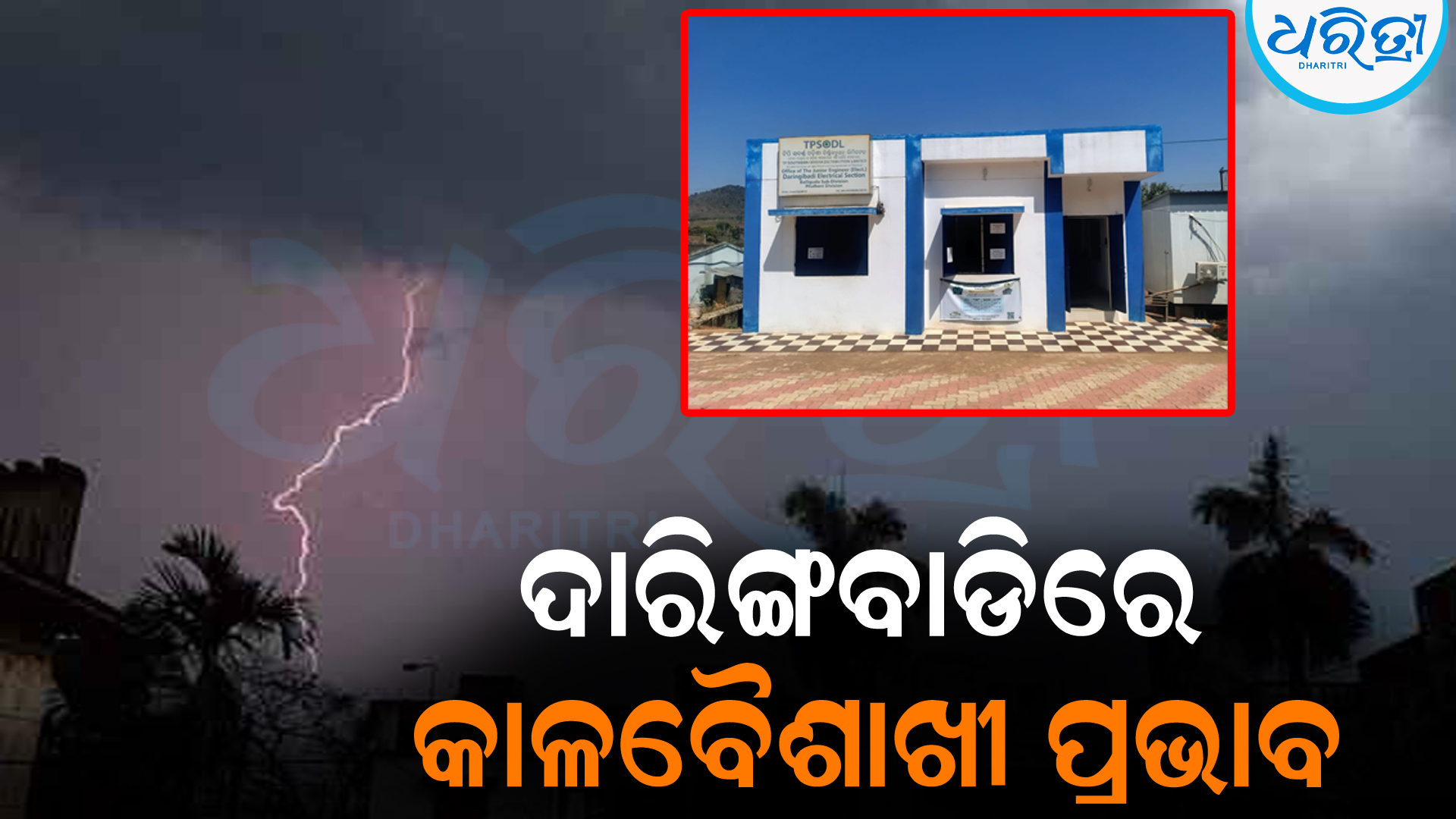 ଦାରିଙ୍ଗବାଡି, ୨୮।୩ (ଅରୁଣ ସାହୁ):କନ୍ଧମାଳ ଜିଲା ଦାରିଙ୍ଗବାଡି ବ୍ଲକ ଅଞ୍ଚଳରେ ଶୁକ୍ରବାର ସନ୍ଧ୍ୟାରେ କଳାବୈଶାଖୀର ପ୍ରଭାବରେ ପବନ ବୋହିବା ସହ ବିଜୁଳି ଘଡଘଡି ସହ ବର୍ଷା ହୋଇଥିଲା ମାତ୍ର ଅଧଘଣ୍ଟା ଧରି ଏଭଳି ବର୍ଷା ହୋଇଥିଲା। ତେବେ ଦାରିଙ୍ଗବାଡି ଅଞ୍ଚଳରେ କଳାବୈଶାଖୀ ହେବା ପୁର୍ବରୁ ଜିଲାର ଅନ୍ୟ ବ୍ଲକରେ ମଧ୍ୟ କାଳବୈଶାଖୀ ହୋଇଥିବାରୁ ଦାରିଙ୍ଗବାଡିକୁ ସଂଯୋଗ କରୁଥିବା ୩୩ କେଭି ବିଦ୍ୟୁତ ଅଚଳ ହୋଇପଡ଼ିଥିଲା। ପରେ ଉକ୍ତ ବ୍ଲକ ଅଞ୍ଚଳରେ କଳାବୈଶାଖୀର ପ୍ରଭାବ ଯୋଗୁ ୧୧ କେଭି ବିଦ୍ୟୁତ ମଧ୍ୟ ଅଚଳ ଯୋଗୁ ଶୁକ୍ରବାର ସଂଧ୍ୟା ୬ଟାରୁ ଖବର ଲେଖିବା ସୁଦ୍ଧା ପ୍ରାୟ ୧୫ଘଣ୍ଟା ଧରି ବିଦ୍ୟୁତ ଯୋଗାଣ ସ୍ବାଭାବିକ ହୋଇପାରି ନ ଥିବା ଯୋଗୁ ଉପଭୋକ୍ତାଙ୍କ ମଧ୍ୟରେ ତୀବ୍ର ଅସନ୍ତୋଷ ଦେଖାଯାଇଛି।