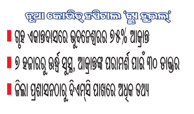 ଶୁକ୍ରବାର ଆୟୋଜିତ ଖବରଦାତା ସମ୍ମିଳନୀରେ ଚୌଧାରୀ କହିଛନ୍ତି, ଶୁକ୍ରବାର ସକାଳ ସୁଦ୍ଧା ୨୦,୨୧୯ଜଣ ପଜିଟିଭ୍‌ ଚିହ୍ନଟ ହୋଇଥିବାବେଳେ ୮୦ଜଣଙ୍କର ମୃତ୍ୟୁ ଘଟିଛି ଓ ୧୬୫୧୧ ସୁସ୍ଥ ହୋଇଥିବାରୁ ଏବେ ୩୬୧୨ ସକ୍ରିୟ ସଂକ୍ରମିତ ରହିଛନ୍ତି। ଏହି ସକ୍ରିୟ ଆକ୍ରାନ୍ତଙ୍କ ମଧ୍ୟରୁ ୭୫% ଗୃହ ଏକାନ୍ତବାସରେ ରହୁଛନ୍ତି। ବସ୍ତି ଅଞ୍ଚଳରୁ ମାତ୍ର ୬୮୬ଜଣ ଆକ୍ରାନ୍ତ ରହିଛନ୍ତି। ଏ ପର୍ଯ୍ୟନ୍ତ ଗୃହ ଏକାନ୍ତବାସରେ ରହି ସାରିଥିବା ୧୦ ହଜାର ଆକ୍ରାନ୍ତଙ୍କ ମଧ୍ୟରୁ ୭ ହଜାରରୁ ଊର୍ଦ୍ଧ୍ୱ ସୁସ୍ଥ ହୋଇଛନ୍ତି। ଭୁବନେଶ୍ୱରର ବର୍ତ୍ତମାନ ସ୍ଥିତି ନିୟନ୍ତ୍ରଣାଧୀନ ରହିଛି। ଆଗାମୀ ଦିନରେ ଗୃହ ଏକାନ୍ତବାସରେ ରହୁଥିବା ଆକ୍ରାନ୍ତଙ୍କ ସ୍ବାସ୍ଥ୍ୟଜନିତ ସମସ୍ତ ସମସ୍ୟାର ସମାଧାନ ପାଇଁ ବିଏମ୍‌ସି ଏକ ଡାକ୍ତରୀ ପ୍ୟାନେଲ୍‌ ପ୍ରସ୍ତୁତ କରୁଛି। ଏଥିରେ ୨୫ରୁ ୩୦ଜଣ ଡାକ୍ତର ରହି ଗୃହ ଏକାନ୍ତାବାସରେ ଥିବା ଆକ୍ରାନ୍ତଙ୍କ ସହ ବାର୍ତ୍ତାଳାପ କରିବା ସହ ସ୍ବାସ୍ଥ୍ୟାବସ୍ଥା ବୁଝିବେ। ଭୁବନେଶ୍ୱରରେ ପୁନଃ ସଂକ୍ରମଣ ମାମଲା ଏଯାବତ୍‌ ନଜରକୁ ଆସିନାହିଁ। ଗୋଟିଏ ମାମଲାରେ ବିଏମ୍‌ସିର ସନ୍ଦେହ ଉପୁଜିବାରୁ ତାଙ୍କ ନମୁନା ଆଇସିଏମ୍‌ଆରକୁ ପରୀକ୍ଷଣ ପାଇଁ ପଠାଯାଇଛି। ଯଦି ପୁନଃ ସଂକ୍ରମଣ କଥା ନଜରକୁ ଆସେ ତା’ହେଲେ ବିଏମ୍‌ସି ଏଥିପ୍ରତି ଅଧିକ ଗୁରୁତ୍ୱ ଦେବା ସହ ଦୃଢ଼ ପଦକ୍ଷେପ ଗ୍ରହଣ କରିବ। କୌଣସି ଅଞ୍ଚଳରେ ବ୍ୟାପକ ସଂକ୍ରମଣ ନଜରକୁ ଆସିଲେ କଣ୍ଟେନ୍‌ମେଣ୍ଟ ଘୋଷଣା କରାଯିବ ବୋଲି ସେ କହିଛନ୍ତି।
