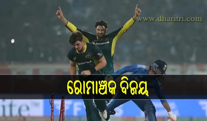 ବିଶାଖାପାଟନମ,୨୪।୧୧: ଭାରତ ଏବଂ ଅଷ୍ଟ୍ରେଲିଆ ମଧ୍ୟରେ ଖେଳାଯାଇଥିବା ପ୍ରଥମ ଟି-୨୦ ମ୍ୟାଚ ବେଶ୍ ରୋମାଞ୍ଚକର ଥିଲା। ମ୍ୟାଚରେ ଆରମ୍ଭରୁ ଶେଷ ପର୍ଯ୍ୟନ୍ତ ଉତ୍ଥାନ-ପତନ ଘଟିଥିଲା। ବିଶାଖାପାଟନମରେ ଖେଳାଯାଇଥିବା ଏହି ମ୍ୟାଚରେ ଅଷ୍ଟ୍ରେଲିଆ ପ୍ରଥମେ ବ୍ୟାଟିଂ କରି ୩ ଉଇକେଟ ହରାଇବା ପରେ ୨୦୮ ରନ ସ୍କୋର କରିଥିଲା, ଏହାର ଜବାବରେ ଭାରତୀୟ ଦଳ ଗୋଟିଏ ବଲ ବାକି ରହି ମ୍ୟାଚ ଜିତିଥିଲା।