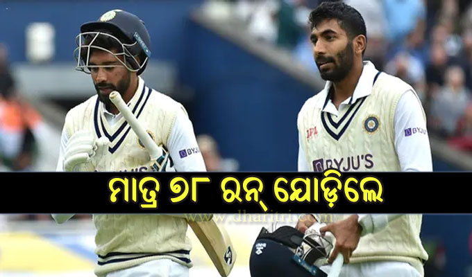 ବର୍ମିଂହାମ,୨।୭: ଇଂଲଣ୍ଡ ବିପକ୍ଷ ୫ମ ଟେଷ୍ଟ ମ୍ୟାଚ୍ର ପ୍ରଥମ ଇନିଂସରେ ୪୧୬ରନ୍ରେ ଅଲ୍ଆଉଟ୍ ହୋଇଛି ଟିମ୍ ଇଣ୍ଡିଆ। ଶନିବାର ଟେଷ୍ଟର ଦ୍ୱିତୀୟ ଦିନର ଖେଳ ୩୩୮/୭ରୁ ଆରମ୍ଭ ହୋଇଥିଲା। ପରେ ଦଳ ମାତ୍ର ୭୮ ରନ୍ ସ୍କୋରରେ ଯୋଡ଼ି ୩ ଉଇକେଟ ହରାଇଥିଲା। ଋଷଭ ପନ୍ତ(୧୪୬) ଏବଂ ରବିନ୍ଦ୍ର ଜାଡେଜା(୧୦୪) ରନ୍ର ବିସ୍ଫୋରକ ଇନିଂସ ଖେଳି ଭାରତକୁ ସମ୍ମାନଜନକ ସ୍କୋରରେ ପହଞ୍ଚାଇଛନ୍ତି।