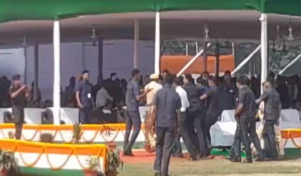 ପାଟନା,୧୫।୮: ପାଟନାର ଗାନ୍ଧୀ ମଇଦାନରେ ୭୭ ତମ ସ୍ବାଧୀନତା ଦିବସ ଆୟୋଜିତ ହୋଇଛି। ଏହି କାର୍ଯ୍ୟକ୍ରମରେ ବିହାର ମୁଖ୍ୟମନ୍ତ୍ରୀ ନୀତୀଶ କୁମାର ପତାକା ଉତ୍ତୋଳନ କରି ରାଜ୍ୟବାସୀଙ୍କୁ ସମ୍ବୋଧିତ କରିଛନ୍ତି। ଏହି ସମୟରେ ସମାରୋହରେ ସୁରକ୍ଷାରେ ତ୍ରୁଟି ଦେଖାଯାଇଛି। ମୁଖ୍ୟମନ୍ତ୍ରୀ ନୀତୀଶ ସମ୍ବୋଧନ କରୁଥିବା ବେଳେ ହଠାତ୍ ଜଣେ ବ୍ୟକ୍ତି କଳା କପଡା ପିନ୍ଧି ସାମ୍ନାକୁ ଆସିଯାଇଥିଲେ। ହାତରେ ବ୍ୟାନର ପୋଷ୍ଟର ଥିଲା। କିଛି ସମୟ ପାଇଁ ସେଠାରେ ଉତ୍ତେଜନା ଦେଖାଦେଇଛି। ପୋଲିସ କର୍ମଚାରୀମାନେ ତାଙ୍କୁ ଧରି ବାହାରକୁ ନେଇଯାଇଥିଲେ।