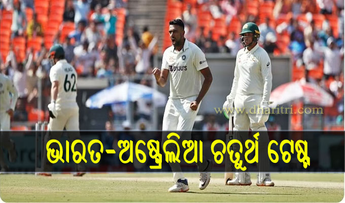 ଅହମ୍ମଦାବାଦ,୯।୩: ଭାରତ ଏବଂ ଅଷ୍ଟ୍ରେଲିଆ ମଧ୍ୟରେ ଚାଲିଥିବା ଟେଷ୍ଟ ସିରିଜର ଚତୁର୍ଥ ମ୍ୟାଚ ଅହମ୍ମଦାବାଦର ନରେନ୍ଦ୍ର ମୋଦି ଷ୍ଟାଡିୟମରେ ଖେଳାଯାଉଛି। ଏହି ମ୍ୟାଚ୍‌ରେ ଟସ ଜିତି ଅଷ୍ଟ୍ରେଲିଆ ପ୍ରଥମେ ବ୍ୟାଟିଂ କରିବାକୁ ନିଷ୍ପତ୍ତି ନେଇଛି। ପ୍ରଥମ ଦିନରେ ଲଞ୍ଚ୍‌ ପର୍ଯ୍ୟନ୍ତ ଅଷ୍ଟ୍ରେଲିଆର ସ୍କୋର ୭୫/୨ ରହିଛି। ଅଧିନାୟକ ଷ୍ଟିଭ ସ୍ମିଥ ୨ ଏବଂ ଉସମାନ ଖ୍ବାଜା ୨୭ ରନ କରି ଖେଳୁଛନ୍ତି। ରବିଚନ୍ଦ୍ରନ ଅଶ୍ୱିନ ଏବଂ ମହମ୍ମଦ ଶାମି ଭାରତ ପାଇଁ ଗୋଟିଏ ଲେଖାଏ ଉଇକେଟ ନେଇଛନ୍ତି। ଟ୍ରେଭିଟ ହେଡ ୩୨ ଏବଂ ଶାମି ମାର୍ନସ ଲାବୁଶେନ ତିନି ରନ ସ୍କୋର କରି ଆଉଟ୍‌ ହୋଇଛନ୍ତି।