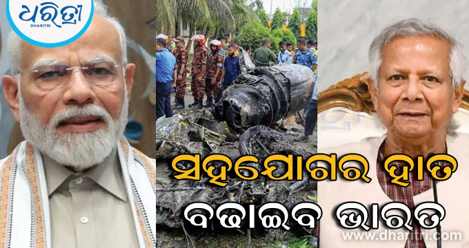 ସୂଚନାଯୋଗ୍ୟ, ସୋମବାର ବାଂଲାଦେଶୀ ବାୟୁସେନାର ଏକ ତାଲିମଦାତା ଯୁଦ୍ଧ ବିମାନ ଢାକାର ଏକ ସ୍କୁଲ କୋଠାରେ ଦୁର୍ଘଟଣାଗ୍ରସ୍ତ ହୋଇଥିଲା। ଏହି ଦୁର୍ଘଟଣାରେ ଅନେକ ଲୋକ ମୃତ୍ୟୁବରଣ କରିଥିବା ବେଳେ ଡଜନ ଡଜନ ଲୋକ ଆହତ ହୋଇଛନ୍ତି। ମୃତ୍ୟୁବରଣ କରିଥିବା ଏବଂ ଆହତ ହୋଇଥିବା ଲୋକଙ୍କ ମଧ୍ୟରେ ବହୁ ସଂଖ୍ୟାରେ ପିଲା ଅଛନ୍ତି। କାରଣ ଯୁଦ୍ଧ ବିମାନଟି ସ୍କୁଲ କୋଠା ଉପରେ ଦୁର୍ଘଟଣାଗ୍ରସ୍ତ ହୋଇଥିଲା। ଏହି ଅସୁବିଧା ସମୟରେ, ଭାରତ ବାଂଲାଦେଶକୁ ସାହାଯ୍ୟର ହାତ ବଢାଇଛି।