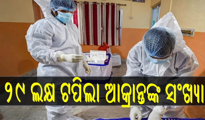 ନୂଆଦିଲ୍ଲୀ,୨୧।୮: ଦେଶରେ ମହାମାରୀ କରୋନା ସଙ୍କଟ ଜାରି ରହିଛି। ଗତ ୨୪ ଘଣ୍ଟାରେ ଦେଶରେ ୬୮ ହଜାର ୮୯୮ ଜଣ ନୂଆ ଆକ୍ରାନ୍ତ ଚିହ୍ନଟ ହୋଇଛନ୍ତି। ଫଳରେ ମୋଟ ଆକ୍ରାନ୍ତଙ୍କ ସଂଖ୍ୟା ୨୯ ଲକ୍ଷ ୫ ହଜାର ୮୨୪ରେ ପହଞ୍ଚିଛି। ସେହିପରି ୨୪ ଘଣ୍ଟାରେ ଦେଶରେ ୯୮୩ ଜଣଙ୍କ ମୃତ୍ୟୁ ଘଟିଛି ବୋଲି କେନ୍ଦ୍ର ସ୍ବାସ୍ଥ୍ୟ ମନ୍ତ୍ରଣାଳୟ ପକ୍ଷରୁ ସୂଚନା ଦିଆଯାଇଛି। ବର୍ତ୍ତମାନ ସୁଦ୍ଧା ଦେଶରେ ୨୯ ଲକ୍ଷ ୫ ହଜାର ୮୨୪ ଜଣ କରୋନା ଆକ୍ରାନ୍ତ ଚିହ୍ନଟ ହୋଇଛନ୍ତି। ସେମାନଙ୍କ ମଧ୍ୟରୁ ୨୧ଲକ୍ଷ ୫୮ହଜାର ୯୪୭ ଜଣ ସୁସ୍ଥ ହୋଇଥିବା ବେଳେ ୫୪ ହଜାର ୮୪୯ ଜଣଙ୍କର ମୃତ୍ୟୁ ହୋଇଛି। ଏବେ ଦେଶରେ ୬ ଲକ୍ଷ ୯୨ ହଜାର ୦୨୮ ଜଣ ଆକ୍ରାନ୍ତ ବିଭିନ୍ନ କୋଭିଡ ହସ୍ପିଟାଲରେ ଚିକିତ୍ସିତ ହେଉଛନ୍ତି।
