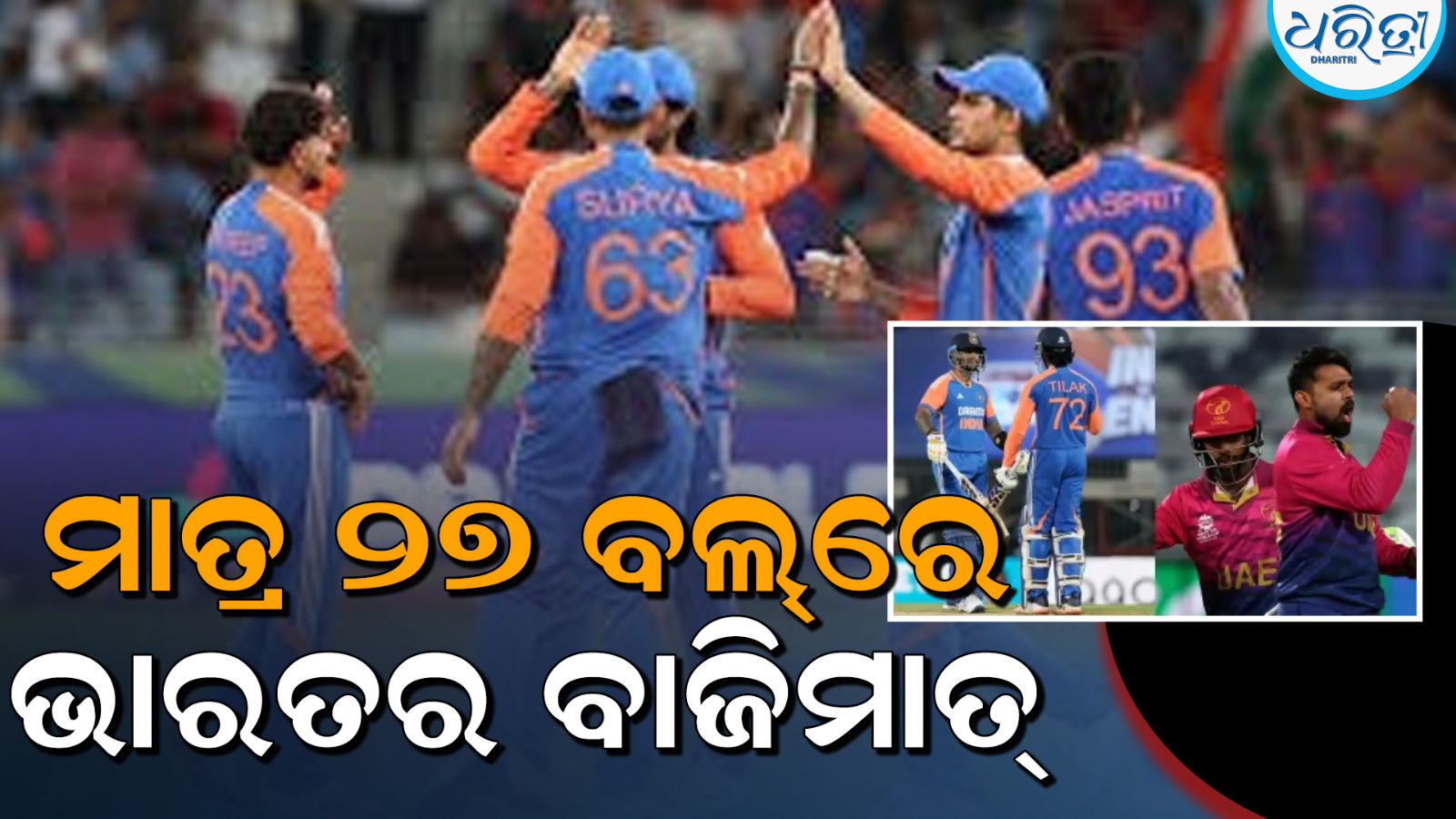 ଦୁବାଇ,୧୧ା୯: ଚଳିତ ଏସିଆ କପ୍ ଟି୨୦ ଟୁର୍ନାମେଣ୍ଟରେ ବୁଧବାର ଖେଳାଯାଇଥିବା ଲିଗ୍ ମ୍ୟାଚ୍ରେ ଡିଫେଣ୍ଡିଂ ଚାମ୍ପିୟନ ଭାରତ ଅତି ସହଜରେ ଆୟୋଜକ ୟୁନାଇଟେଡ୍ ଆରବ ଏମିରେଟ୍ସ(ୟୁଏଇ)କୁ ୯ ଉଇକେଟରେ ପରାସ୍ତ କରିଦେଇଛି। ପ୍ରଥମେ ବ୍ୟାଟିଂ କରିଥିବା ୟୁଏଇ ବିପର୍ଯ୍ୟୟର ସମ୍ମୁଖୀନ ହୋଇ ମାତ୍ର ୧୩.୧ ଓଭରରେ ୫୭ ରନ୍ରେ ଅଲଆଉଟ୍ ହୋଇଯାଇଥିଲା। ୫୮ ରନ୍ର ଛୋଟିଆ ଟାର୍ଗେଟ୍କୁ ଭାରତ ମାତ୍ର ୪.୩ ଓଭରରେ(୨୭ ବଲ୍ରେ) ୧ ଉଇକେଟ ହାରାଇ ଲକ୍ଷ୍ୟ ହାସଲ କରି ନେଇଥିଲା। ଭାରତ ତା’ର ପରବର୍ତ୍ତୀ ମ୍ୟାଚ୍ରେ ଚିରପ୍ରତିଦ୍ୱନ୍ଦ୍ୱୀ ପାକିସ୍ତାନକୁ ଭେଟିବ। ଭାରତର ଫର୍ମ ପାକିସ୍ତାନକୁ କଡ଼ା ଚେତାବନୀ ସଦୃଶ ହୋଇଛି।