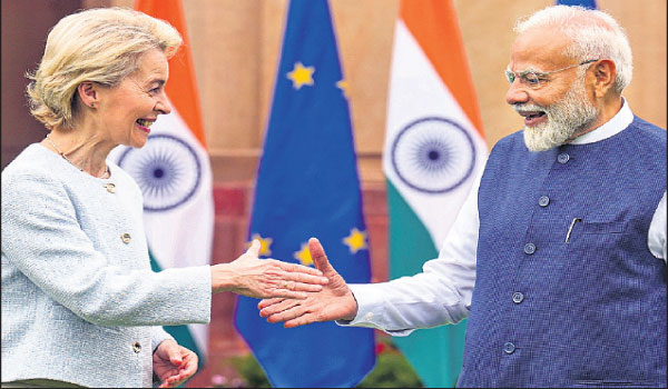 ନୂଆଦିଲ୍ଲୀ,୧।୩: ଆମେରିକାର ଡୋନାଲ୍ଡ ଟ୍ରମ୍ପ୍ ପ୍ରଶାସନ ଅତ୍ୟଧିକ ଆମଦାନୀ ଶୁଳ୍କ ଲଗାଇବା ପାଇଁ ଚେତାବନୀ ଦେଇଥିବାବେଳେ ଏହା ବୈଶ୍ୱିକ ଅର୍ଥନୀତି ଉପରେ ପ୍ରତିକୂଳ ପ୍ରଭାବ ପକାଇପାରେ। ଏଭଳି ଆଶଙ୍କା ମଧ୍ୟରେ ଭାରତ ଏବଂ ୟୁରୋପୀୟ ୟୁନିୟନ (ଇୟୁ) ଚଳିତ ବର୍ଷ ଶେଷ ସୁଦ୍ଧା ବହୁ ପ୍ରତୀକ୍ଷିତ ମୁକ୍ତ ବାଣିଜ୍ୟ ଚୁକ୍ତିନାମା ସମ୍ପୂର୍ଣ୍ଣ କରିବାକୁ ଶୁକ୍ରବାର ସହମତ ହୋଇଛନ୍ତି। ପ୍ରଧାନମନ୍ତ୍ରୀ ନରେନ୍ଦ୍ର ମୋଦି ଏବଂ ୟୁରୋପୀୟ କମିଶନ ଅଧ୍ୟକ୍ଷ ଉର୍ସୁଲା ଭନ୍ ଡେର୍ ଲେୟେନଙ୍କ ମଧ୍ୟରେ ହୋଇଥିବା ଆଲୋଚନାରେ ଏହି ନିଷ୍ପତ୍ତି ନିଆଯାଇଛି। ଦ୍ୱିପାକ୍ଷିକ ପ୍ରତିରକ୍ଷା ସହଯୋଗ ବିଶେଷ କରି ଭାରତ-ପ୍ରଶାନ୍ତ ମହାସାଗରୀୟ ଅଞ୍ଚଳରେ ବଢ଼ାଇବା ପାଇଁ ଉଭୟ ନେତା ନିଷ୍ପତ୍ତି ନେଇଛନ୍ତି। ଚୁକ୍ତିନାମା ଚୂଡ଼ାନ୍ତ ହେବା ପରେ ଚଳିତ ବର୍ଷ ଶେଷ ଭାଗରେ ନୂଆଦିଲ୍ଲୀ ଆୟୋଜନ କରିବାକୁ ଯାଉଥିବା ଭାରତ-ଇୟୁ ସମିଟ୍ରେ ଏଫ୍ଟିଏ ଶୁଭାରମ୍ଭ ହେବ ବୋଲି ପ୍ରଧାନମନ୍ତ୍ରୀ କହିଛନ୍ତି।