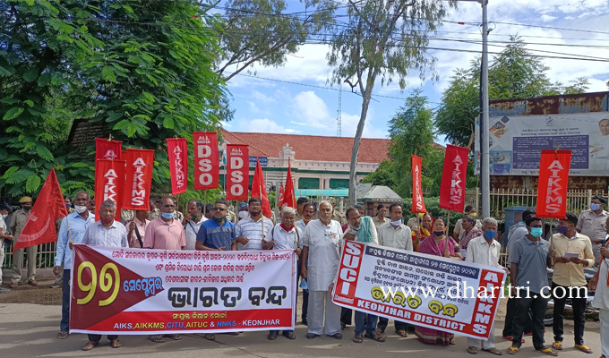କେନ୍ଦୁଝର,୨୭ା୯(ସ୍ବ.ପ୍ର.): ସଂଯୁକ୍ତ କୃଷକ ମୋର୍ଚ୍ଚା ପକ୍ଷରୁ ଡାକରା ଦିଆଯାଇଥିବା ଭାରତ ବନ୍ଦ କେନ୍ଦୁଝର ଜିଲାରେ ଶାନ୍ତପୂର୍ଣ୍ଣ ଭାବରେ ଆରମ୍ଭ ହୋଇଛି। କେନ୍ଦୁଝରରେ ଏନ୍ଏଚ୍ ୪୯ ଗାନ୍ଧିଛକରେ ଏଆଇଟିୟୁସି, ସିଟୁ, ସିପିଆଇ, ସିପିଏମ, କଂଗ୍ରେସ, ନବ ନିର୍ମାଣ କୃଷକ ସଙ୍ଗଠନ, କୃଷକ ସଭା ଆଦି ସାମିଲ ହୋଇଛନ୍ତି। ଜିଲାର ବିଭିନ୍ନ ସ୍ଥାନରେ ରାସ୍ତାରୋକୋ, ପିକେଟିଂ କରି ବନ୍ଦ ଆରମ୍ଭ ହୋଇଛି। ଏହି ଆନ୍ଦୋଳନରେ ଅନ୍ୟମାନଙ୍କ ମଧ୍ୟରେ ଅରୁଣ ଦାସ, ପୂର୍ଣ୍ଣଚନ୍ଦ୍ର ରାଉତ, ଭବାନୀ ଶଙ୍କର ମହାନ୍ତ, ଯତୀନ୍ଦ୍ର ପଣ୍ଡା, ଲକ୍ଷ୍ମୀଧର ପ୍ରଧାନ ପ୍ରମୁଖ ଯୋଗ ଦେଇଥିଲେ। ଅନେକ ଅଞ୍ଚଳରେରେ ଦୋକାନ ବଜାର ଓ ଅଫିସ ଖୋଲା ରହିଥିଲା। ଶିକ୍ଷାନୁଷ୍ଠାନ ବନ୍ଦ ରହିଥିବା ବେଳେ ରାସ୍ତାରେ ଯାତାୟାତ ବନ୍ଦ ରହିଥିବା ଦେଖିବାକୁ ମିଳିଛି। ଖଣି କାର୍ଯ୍ୟ ଓ ପରିବହନ ବାଧାପ୍ରାପ୍ତ ହୋଇଛି।