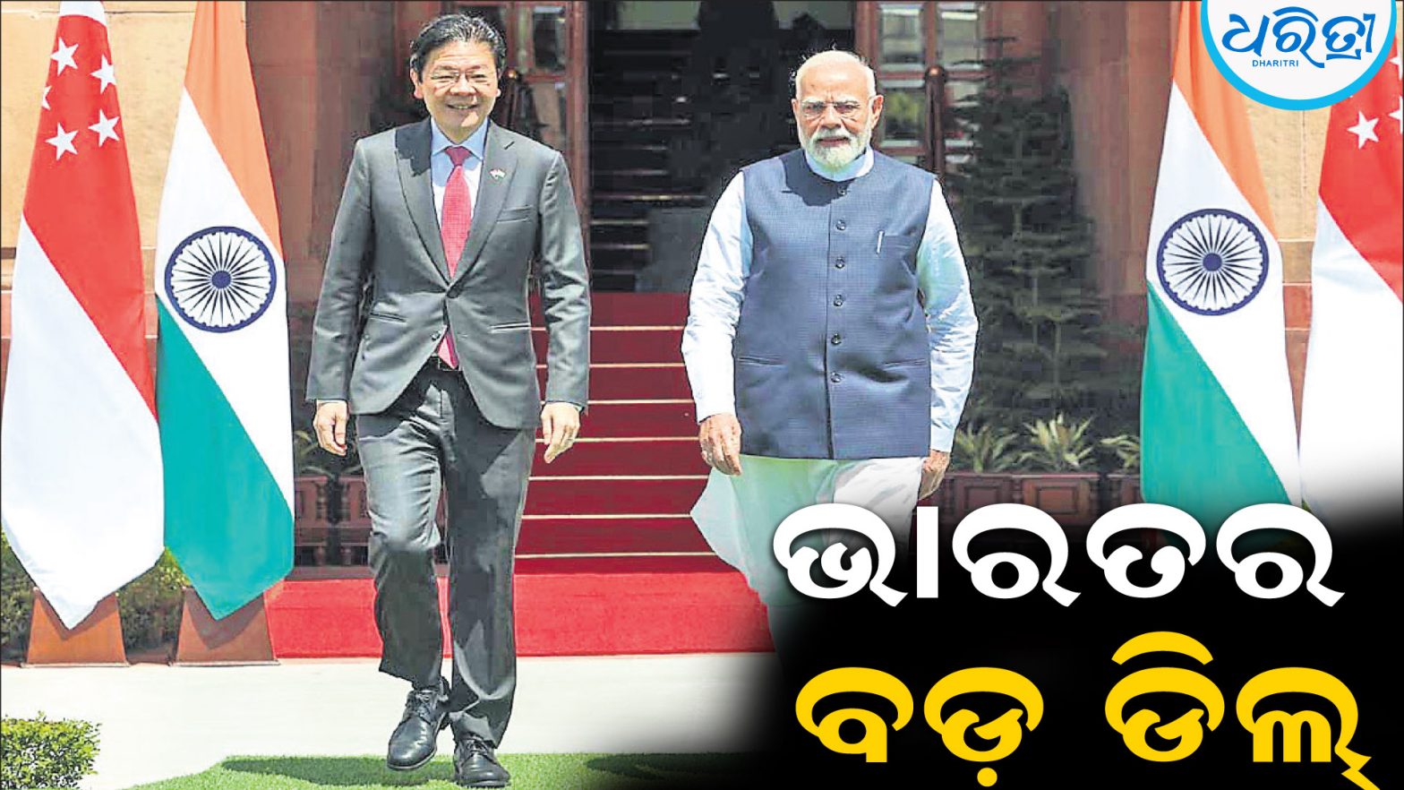 ନୂଆଦିଲ୍ଲୀ,୫।୯:ଆମେରିକା ସହିତ ଟାରିଫ୍କୁ ନେଇ ବିବାଦ ଲାଗି ରହିଥିବା ବେଳେ, ଭାରତ ସିଙ୍ଗାପୁର ସହିତ ଅନେକ ଗୁରୁତ୍ୱପୂର୍ଣ୍ଣ ଚୁକ୍ତି ସ୍ବାକ୍ଷର କରିଛି। ପ୍ରଧାନମନ୍ତ୍ରୀ ନରେନ୍ଦ୍ର ମୋଦି ଏବଂ ସିଙ୍ଗାପୁର ପ୍ରଧାନମନ୍ତ୍ରୀ ଲରେନ୍ସ ୱଙ୍ଗ ନୂଆଦିଲ୍ଲୀରେ ସାକ୍ଷାତ କରିଥିଲେ। ଏହି ସମୟରେ, ଦୁଇ ଦେଶ ମଧ୍ୟରେ ୫ଟି ଗୁରୁତ୍ୱପୂର୍ଣ୍ଣ ଚୁକ୍ତି ସ୍ବାକ୍ଷରିତ ହୋଇଥିଲା। ସବୁଜ ପରିବହନ ଠାରୁ ମହାକାଶ ପର୍ଯ୍ୟନ୍ତ, ଭାରତ ଏବଂ ସିଙ୍ଗାପୁର ମିଳିତ ଭାବରେ ଆଗାମୀ ବର୍ଷଗୁଡ଼ିକରେ ଏସିଆ-ପ୍ରଶାନ୍ତ ମହାସାଗରୀୟ କ୍ଷେତ୍ରର ରାଜନୀତି ଏବଂ ଅର୍ଥନୀତିକୁ ନୂତନ ଗତି ଦେବ।