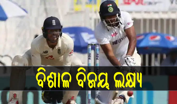ଚେନ୍ନାଇ,୧୫।୨: ଚେନ୍ନାଇର ଏମ ଚିଦାମ୍ବରମ ଷ୍ଟାଡିୟମରେ ଭାରତ ଏବଂ ଇଂଲଣ୍ଡ ମଧ୍ୟରେ ଚାରି ମ୍ୟାଚ ବିଶିଷ୍ଟ ଟେଷ୍ଟ ସିରିଜର ଦ୍ୱିତୀୟ ମ୍ୟାଚ ଜାରି ରହିଛି। ସୋମବାର ମ୍ୟାଚର ତୃତୀୟ ଦିନରେ ଟିମ ଇଣ୍ଡିଆ ଇଂଲଣ୍ଡ ସାମ୍ନାରେ ୪୮୨ ରନ୍ର ବିଜୟ ଲକ୍ଷ ରଖିଛି। ଅଦତ୍ନାୟକ ବିରାଟ କୋହଲିଙ୍କ ଅର୍ଦ୍ଧଶତକ ଏବଂ ଆର୍ ଅଶ୍ୱିନଙ୍କ ଶତକ ବଳରେ ଭାରତ ଦ୍ୱିତୀୟ ଇନିଂସରେ ୨୮୬ ରନ୍ରେ ଅଲଆଉଟ୍ ହୋଇଥିଲା। ଭାରତର ପ୍ରଥମ ଇନିଂସରେ ଦଳର ସ୍କୋର ୩୨୯ ରନ ଥିଲା। ଏହାର ଜବାବରେ ଇଂଲଣ୍ଡ ଦଳ ପ୍ରଥମ ଇନିଂସରେ ୧୩୪ ରନ ସ୍କୋର କରି ଆଉଟ ହୋଇଥିଲେ। ପ୍ରଥମ ଇନିଂସ ଆଧାରରେ ଭାରତ ୧୯୫ ରନର ଏକ ଅଗ୍ରଣୀ ହାସଲ କରିଥିଲା। ଅଫ ସ୍ପିନର ଆର ଅଶ୍ୱିନ ଏକ ସ୍ପିନର ସହାୟକ ପିଚ୍ରେ ଭାରତ ପାଇଁ ସର୍ବାଧିକ ୫ଟି ଉଇକେଟ ନେଇଥିଲେ। ଏହି ଟେଷ୍ଟ ସିରିଜ୍ ଇଂଲଣ୍ଡ ୧-୦ ଆଗୁଆ ରହିଛି।