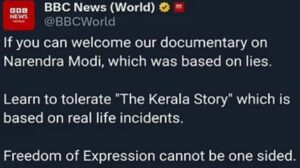 ନୂଆଦିଲ୍ଲୀ,୧୧।୫:ଫିଲ୍ମ ଦ କେରଲା ଷ୍ଟୋରି ନେଇ ବିବାଦ ଥମିବାର ନାଁ ନେଉନାହିଁ। ସୁଦୀପ୍ତୋ ସେନଙ୍କ୍ ନିର୍ଦ୍ଦେଶିତ ଏହି ଫିଲ୍ମରେ କେରଳର ହିନ୍ଦୁମାନଙ୍କର କାହାଣୀ ଅଛି ଯେଉଁମାନଙ୍କର ଧର୍ମ ପରିବର୍ତ୍ତନ କରି ଆଇଏସଆଇଏସ୍ରେ ଯୋଗ ଦେବାକୁ ସିରିଆକୁ ନିଆଯାଇଥିଲେ। ଏହି ଫିଲ୍ମକୁ କେତେକ ରାଜ୍ୟରେ ନିଷେଧ କରାଯାଇଛି ଏବଂ କେତେକ ସ୍ଥାନରେ ଏହାକୁ ଟିକସମୁକ୍ତ କରାଯାଇଛି। ବର୍ତ୍ତମାନ ଏହି ସମୟରେ ବ୍ରିଟିଶ ବ୍ରଡକାଷ୍ଟିଂ କର୍ପୋରେସନ (ବିବିସି) ନ୍ୟୁଜର ଏକ ଟୁଇଟ୍ର ସ୍କ୍ରିନସଟ୍ ସୋସିଆଲ ମିଡିଆରେ ଭାଇରାଲ ହେବାରେ ଲାଗିଛି।