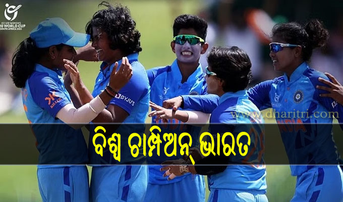 ପୋଶ୍ଚେଫଷ୍ଟ୍ରୁମ୍,୨୯।୧: ଭାରତ ଅଣ୍ଡର-୧୯ ମହିଳା ଟି-୨୦ ବିଶ୍ୱକପ ୨୦୨୩ ଟାଇଟଲ ହାସଲ କରିଛି। ଶେଫାଳି ବର୍ମାଙ୍କ ନେତୃତ୍ୱଧୀନ ଭାରତୀୟ ଦଳ ଫାଇନାଲରେ ଇଂଲଣ୍ଡକୁ ୭ ଉଇକେଟରେ ପରାସ୍ତ କରିଛି। ଟିମ ଇଣ୍ଡିଆ ଏହି ବିଶ୍ୱକପର ପ୍ରଥମ ସଂସ୍କରଣ ଜିତି ଇତିହାସ ସୃଷ୍ଟି କରିଛି । ପ୍ରଥମେ ବ୍ୟାଟିଂ କରି ଇଂଲଣ୍ଡ ଭାରତ ସମ୍ମୁଖରେ ୬୯ ରନ ସଂଗ୍ରହ କରିଥିଲା ଏବଂ ଟିମ ଇଣ୍ଡିଆ ୩ ଉଇକେଟ ହରାଇ ଲକ୍ଷ୍ୟ ହାସଲ କରିଥିଲା।