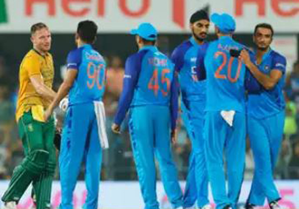 ଗୁଆହାଟୀ,୨।୧୦: ସ୍ଥାନୀୟ ବର୍ଷାପଡା ଗ୍ରାଉଣ୍ଡରେ ଭାରତ ଓ ଦକ୍ଷିଣ ଆଫ୍ରିକା ମଧ୍ୟରେ ରବିବାର ଖେଳାଯାଇଥିବା ଦ୍ୱିତୀୟ ଟି-୨୦ ହାଇସ୍କୋରିଂ ମ୍ୟାଚ୍‌ରେ ଟିମ୍‌ ଇଣ୍ଡିଆ ୧୬ ରନ୍‌ରେ ବିଜୟୀ ହୋଇଛି। ଏହି ବିଜୟ ୩ ମ୍ୟାଚ ବିଶିଷ୍ଟ ସିରିଜକୁ ୨-୦ରେ ଆଗୁଆ କବଜା କରି ନେଇଛି ଭାରତ।