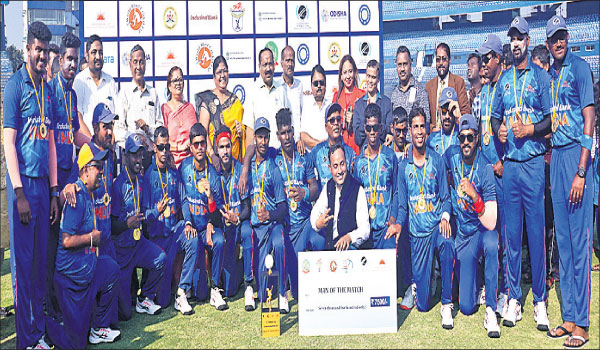 ଭୁବନେଶ୍ୱର,୧୪।୧୨(ସ୍ପୋଟର୍ସ ବ୍ୟୁରୋ): କଟକର ବାରବାଟୀ ଷ୍ଟାଡିୟମରେ ଖେଳାଯାଇଥିବା ଦୃଷ୍ଟିବାଧିତ ଟି ୨୦ ବିଶ୍ୱକପର ତୃତୀୟ ମ୍ୟାଚକୁ ଜିତିନେଇଛି ଭାରତ। ବୁଧବାର ନକୁଳ ବଡନାୟକଙ୍କ ଅଲରାଉଣ୍ଡ ସଫଳତା ବଳରେ ବାଂଲାଦେଶକୁ ୭ ଉଇକେଟରେ ପରାସ୍ତ କରିଥିଲା ଭାରତ। ପ୍ରଥମେ ବ୍ୟାଟିଂ କରି ବାଂଲାଦେଶ ୪ ଉଇକେଟରେ ୧୬୬ ରନ୍ କରିଥିଲା। ଅଧିନାୟକ ଆଶିକୁର ରହମାନ ୭୫ ରନ୍ କରିଥିଲେ। ଭାରତ ପକ୍ଷରୁ ନକୁଳ ଗୋଟିଏ ଉଇକେଟ ନେବା ସହିତ ଦୁଇଟି ରନ୍ ଆଉଟ କରିଥିଲେ। ୧୬୭ ରନର ପିଛା କରୁଥିବା ଭାରତୀୟ ଦଳ ୧୩.୧ ଓଭରରେ୩ ଉଇକେଟ ହରାଇ ୧୬୭ ରନ୍ କରି ନେଇଥିଲେ। ଭାରତ ପକ୍ଷରୁ ଟି. ଦୁର୍ଗା ରାଓ ୭୩ ଓ ନକୁଳ ୩୬ ରନ୍ କରିଥିଲେ। ଭାରତର ଦୁଇ ଜଣ ବ୍ୟାଟର ରନଆଉଟ ହୋଇଥିବା ବେଳେ କୌଣସି ବାଂଲାଦେଶୀ ବୋଲର ଉଇକେଟ ପାଇନଥିଲେ। ଦୃଷ୍ଟିବାଧିତ କ୍ରିକେଟ ସଂଘ(କାଭି) ଓ ଓଡ଼ିଶା କ୍ରିକେଟ ଆସୋସିଏସନ୍ (ଓସିଏ) ପକ୍ଷରୁ ଏହି ମ୍ୟାଚ ଆୟୋଜନ କରାଯାଇଥିଲା। କଟକ ମେୟର୍ ସୁବାଷ ସିଂ, ଓସିଏ ଉପ ସଭାପତି ପଙ୍କଜ ଲୋଚନ ମହାନ୍ତି, ଓସିଏ କୋଷାଧ୍ୟକ୍ଷ ବିକାଶ ପ୍ରଧାନ, ଓସିଏ ସିଇଓ ସୁବ୍ରତ କୁମାର ବେହେରା, ମହିଳା ଓ ଶିଶୁ ବିକାଶ ମନ୍ତ୍ରାଳୟ ମୁଖ୍ୟ ଡ. କଳ୍ପନା ଦାସ, ରେଭେନ୍ସା ବିଶ୍ୱବିଦ୍ୟାଳୟର ପୂର୍ବତନ ରେଜିଷ୍ଟ୍ରାର ମଳୟ ମହାନ୍ତି, ଶୈଳବାଳା ମହିଳା କଲେଜର ଅଧ୍ୟକ୍ଷା ଜୟଶ୍ରୀ ବିଶ୍ୱାଳ, କାଭି ଓଡ଼ିଶା ସମ୍ପାଦକ ସନ୍ୟାସୀ କୁମାର ବେହେରା ଓ କାଭି ଓଡିଶା ସଭାପତି ଜାଫର ଇକବାଲ ପ୍ରମୁ୍ଖ ଅତିଥି ଭାବରେ ଉପସ୍ଥିତ ରହିଥିଲେ।