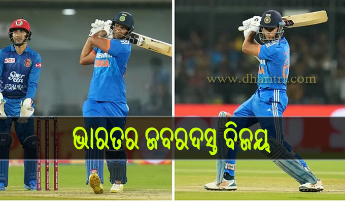 ଇନ୍ଦୋର,୧୪।୧: ଦ୍ୱିତୀୟ ଟି-୨୦ରେ ଭାରତ ଆଫଗାନିସ୍ତାନକୁ ୬ ଉଇକେଟରେ ପରାସ୍ତ କରିଛି। ଏହି ବିଜୟ ସହିତ ଟିମ ଇଣ୍ଡିଆ ସିରିଜରେ ୨-୦ରେ ଅଗ୍ରଣୀ ହାସଲ କରିଛି। ଭାରତୀୟ ଅଧିନାୟକ ରୋହିତ ଶର୍ମା ଟସ ଜିତି ପ୍ରଥମେ ବୋଲିଂ କରିବାକୁ ନିଷ୍ପତ୍ତି ନେଇଥିଲେ। ଆଫଗାନିସ୍ତାନ ଦଳ ୨୦ ଓଭରରେ ୧୭୨ ରନରେ ଅଲଆଉଟ୍ ହୋଇଥିଲା। ଏହାର ଜବାବରେ ଭାରତ ୧୫.୪ ଓଭରରେ ଚାରି ଉଇକେଟ ହରାଇ ଲକ୍ଷ୍ୟସ୍ଥଳରେ ପହଞ୍ଚିଥିଲା। ସିରିଜର ତୃତୀୟ ତଥା ଶେଷ ମ୍ୟାଚ ଜାନୁଆରୀ ୧୭ରେ ବେଙ୍ଗାଲୁରୁରେ ଖେଳାଯିବ।
